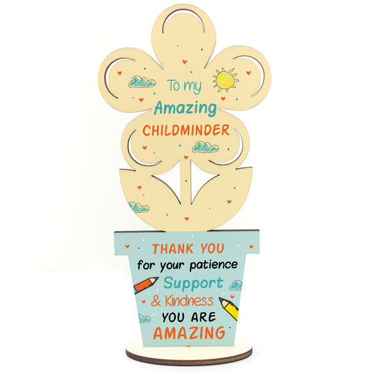 Childminder Thank You Gift Wooden Flower Present For Babysitter