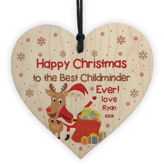 Happy Christmas Gift For Childminder Wood Heart Personalised
