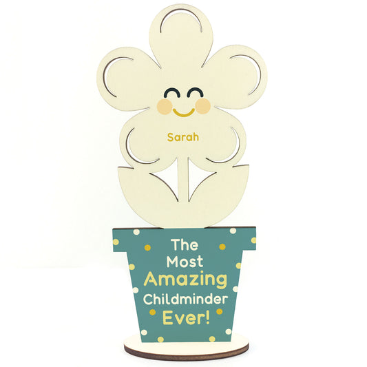 Personalised Childminder Gift Wood Flower Thank You Gift