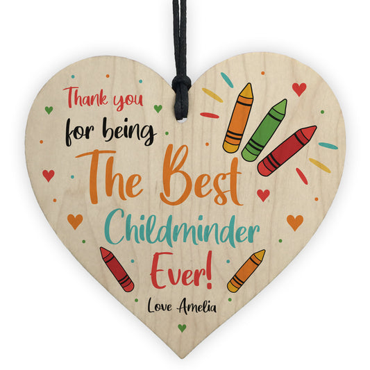 Personalised Wood Childminder Gift Heart Plaque Friendship Gift