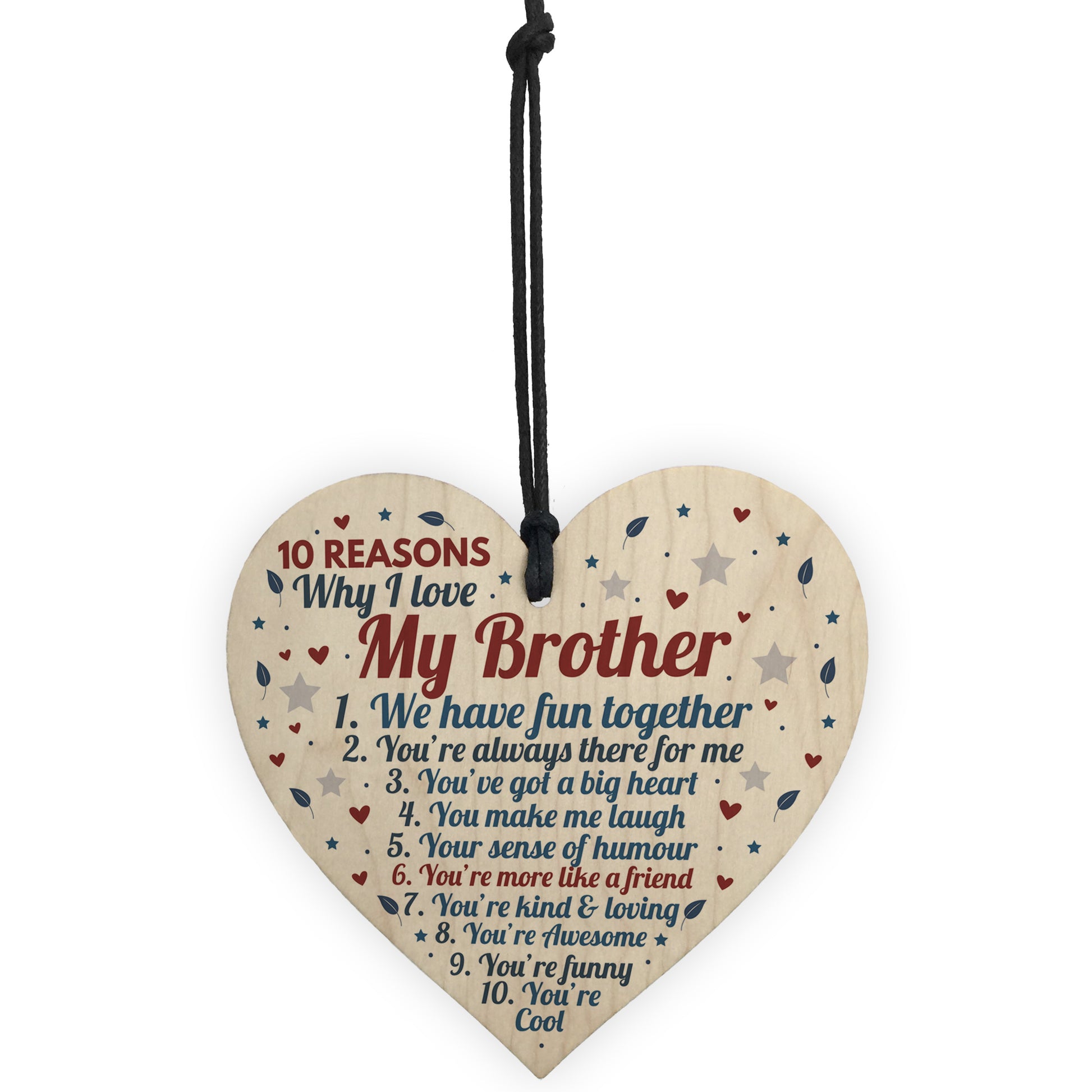 10 Reasons Why I Love My Brother Wooden Heart Sign Birthday Gift