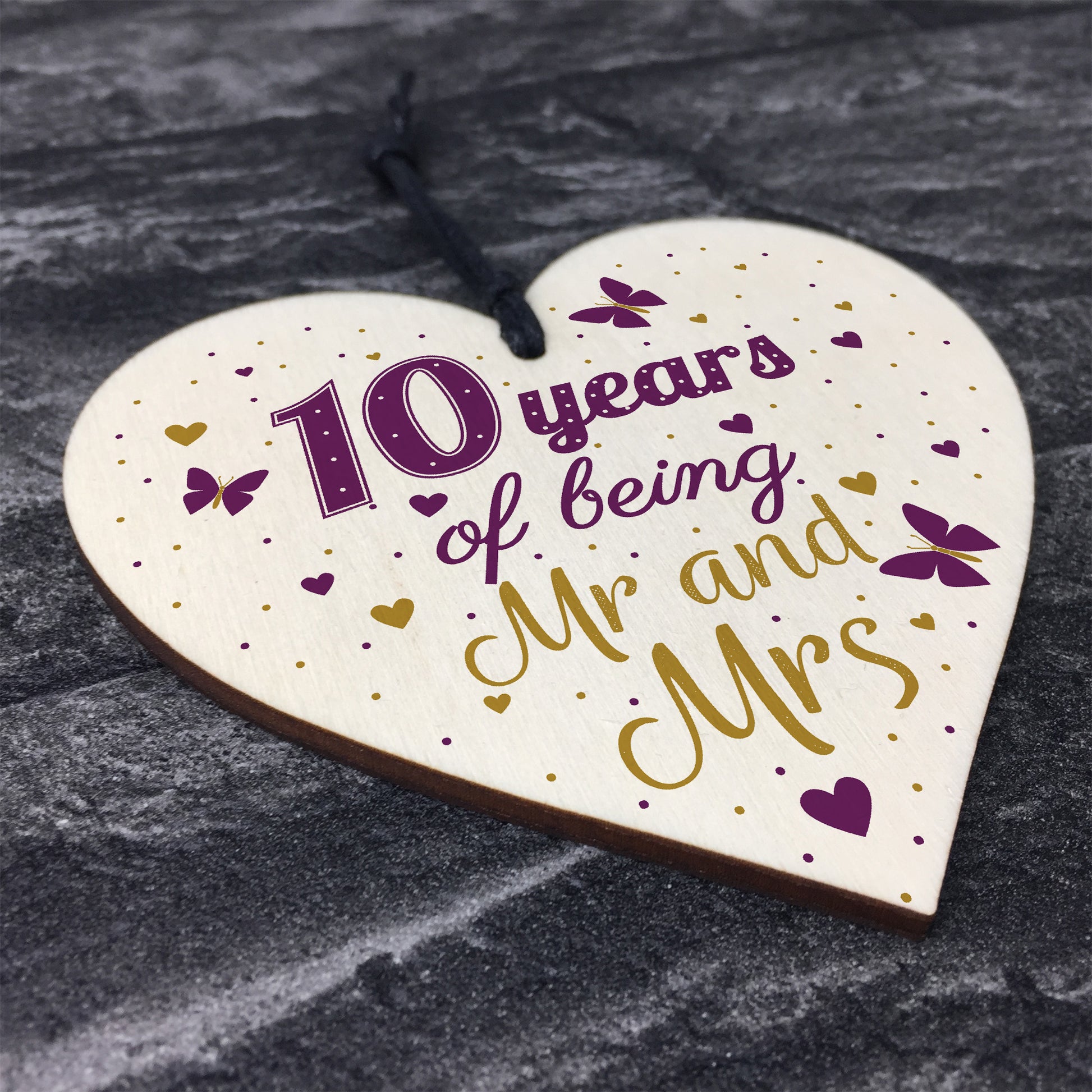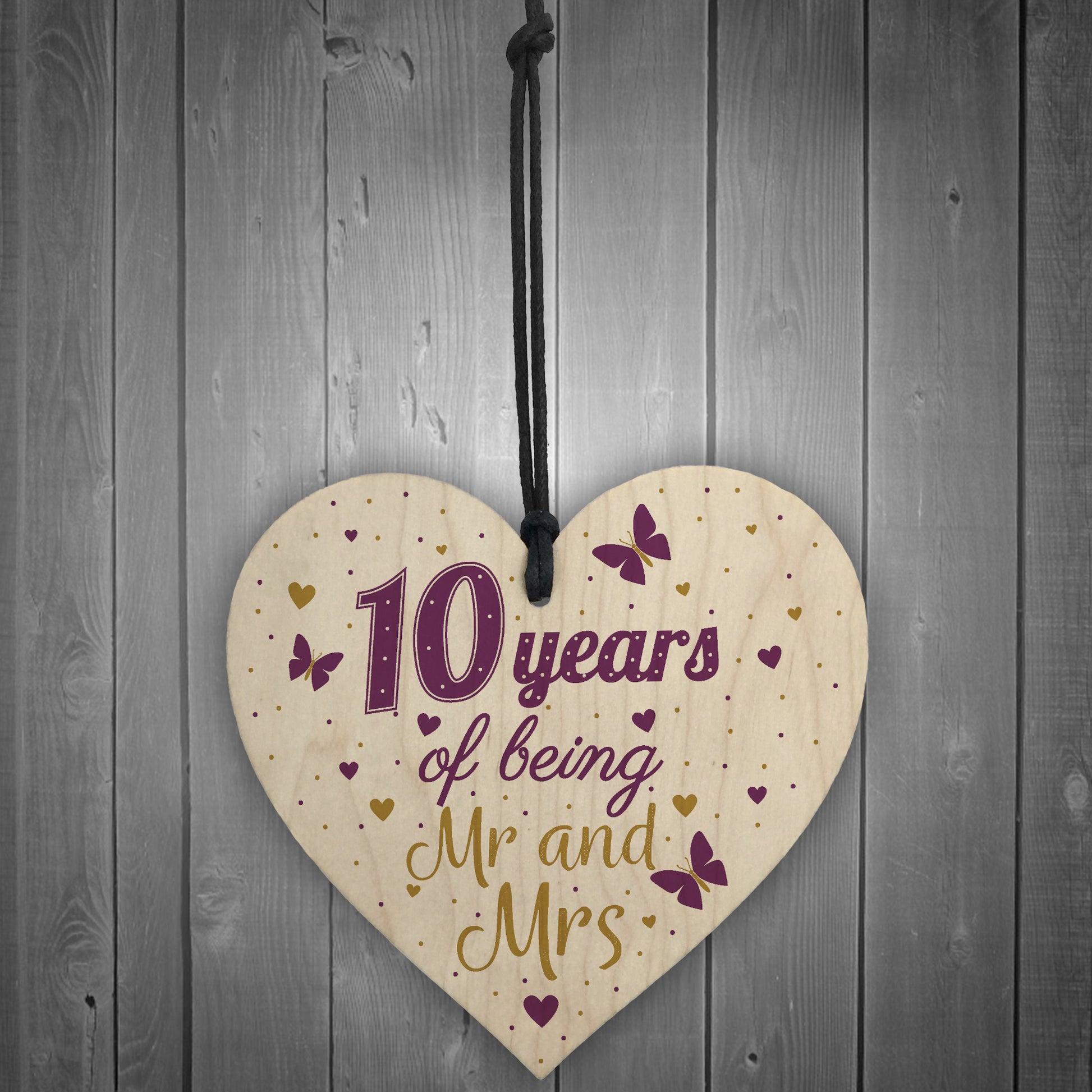 10 Year Anniversary Gift Wood Heart Sign Mr And Mrs 10th Plaque