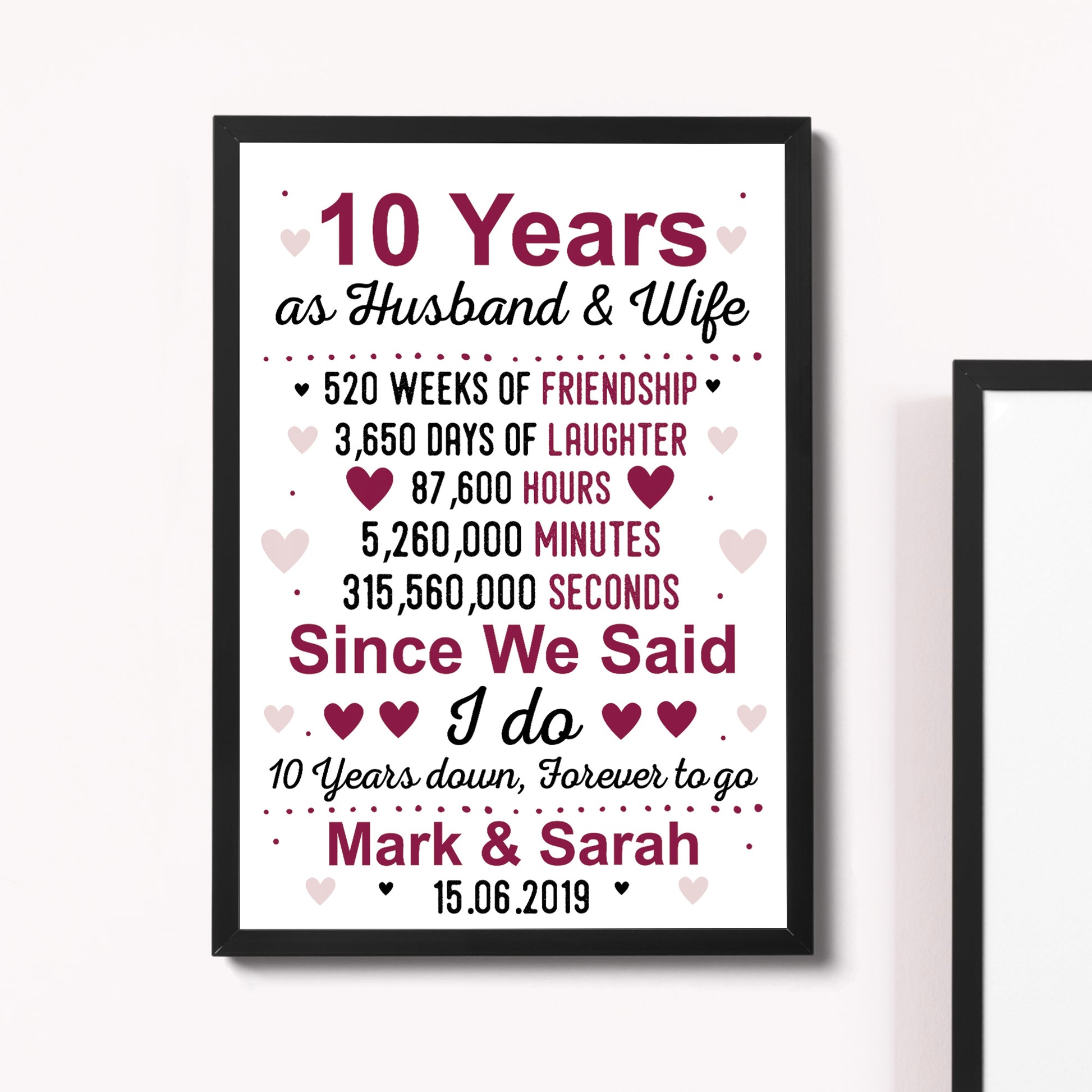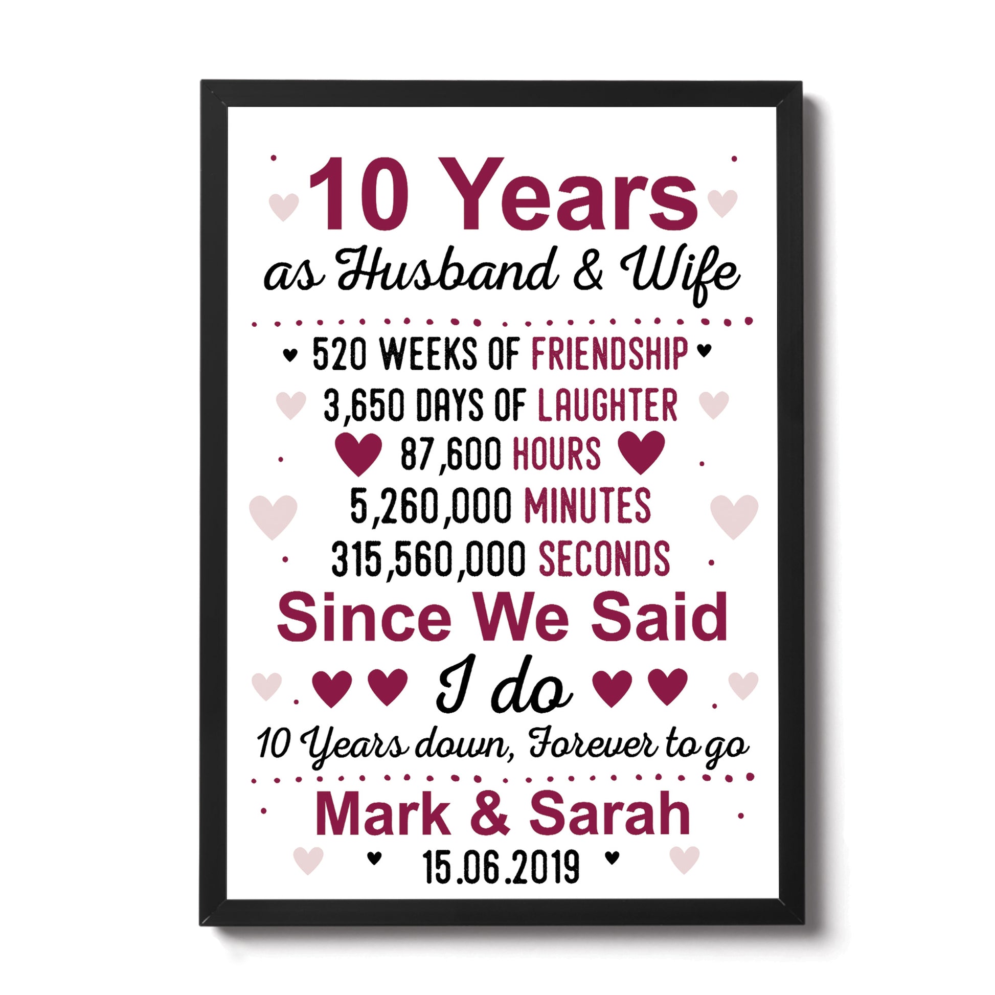 10th Anniversary Gift Personalised 10th Anniversary Husband Wife