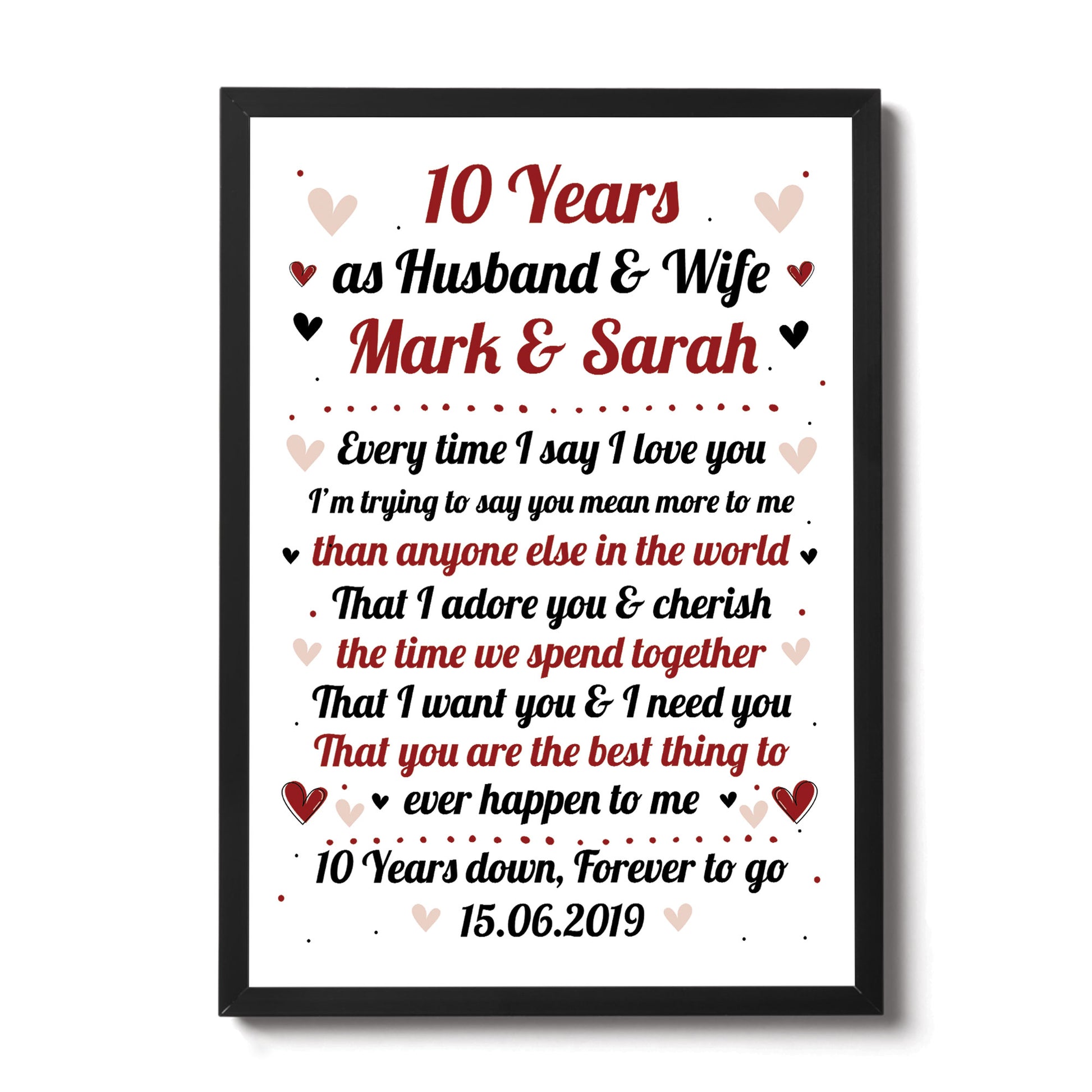 10th Wedding Anniversary Gift For Husband or Wife Framed Print