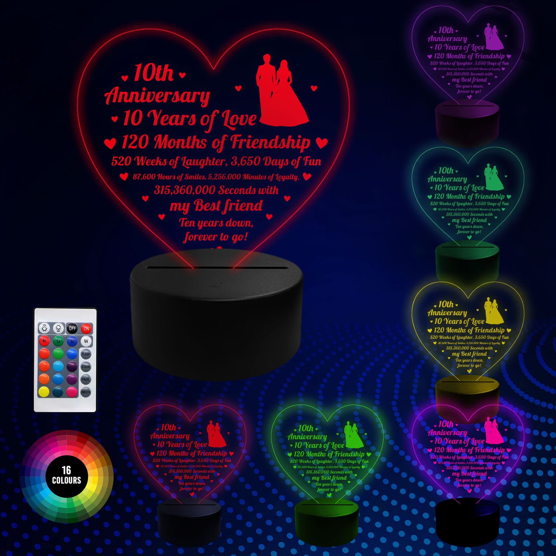 10th Wedding Anniversary Gifts for Her Him 3D Lamp