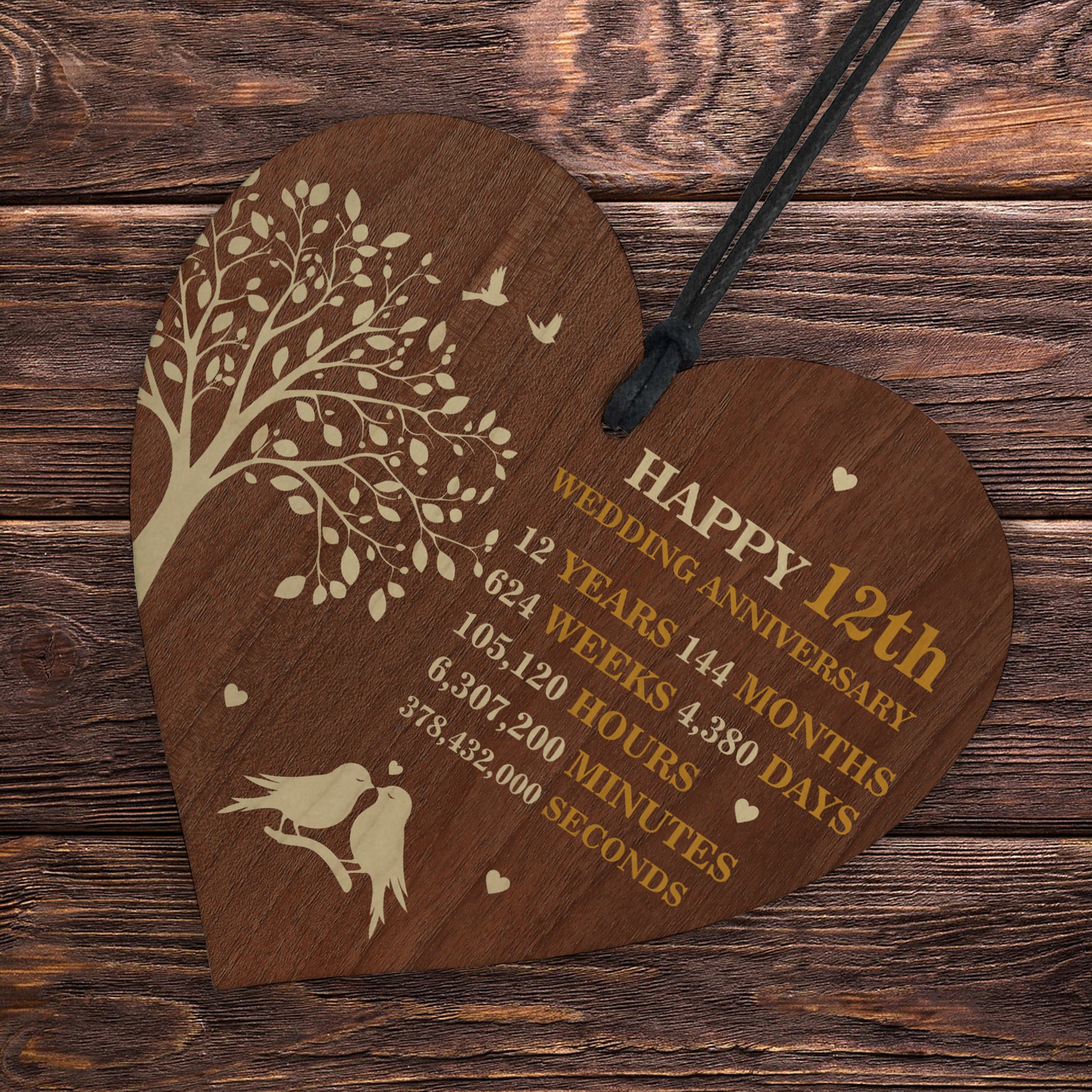11th Wedding Anniversary Wooden Heart Plaque Dark Wife Husband