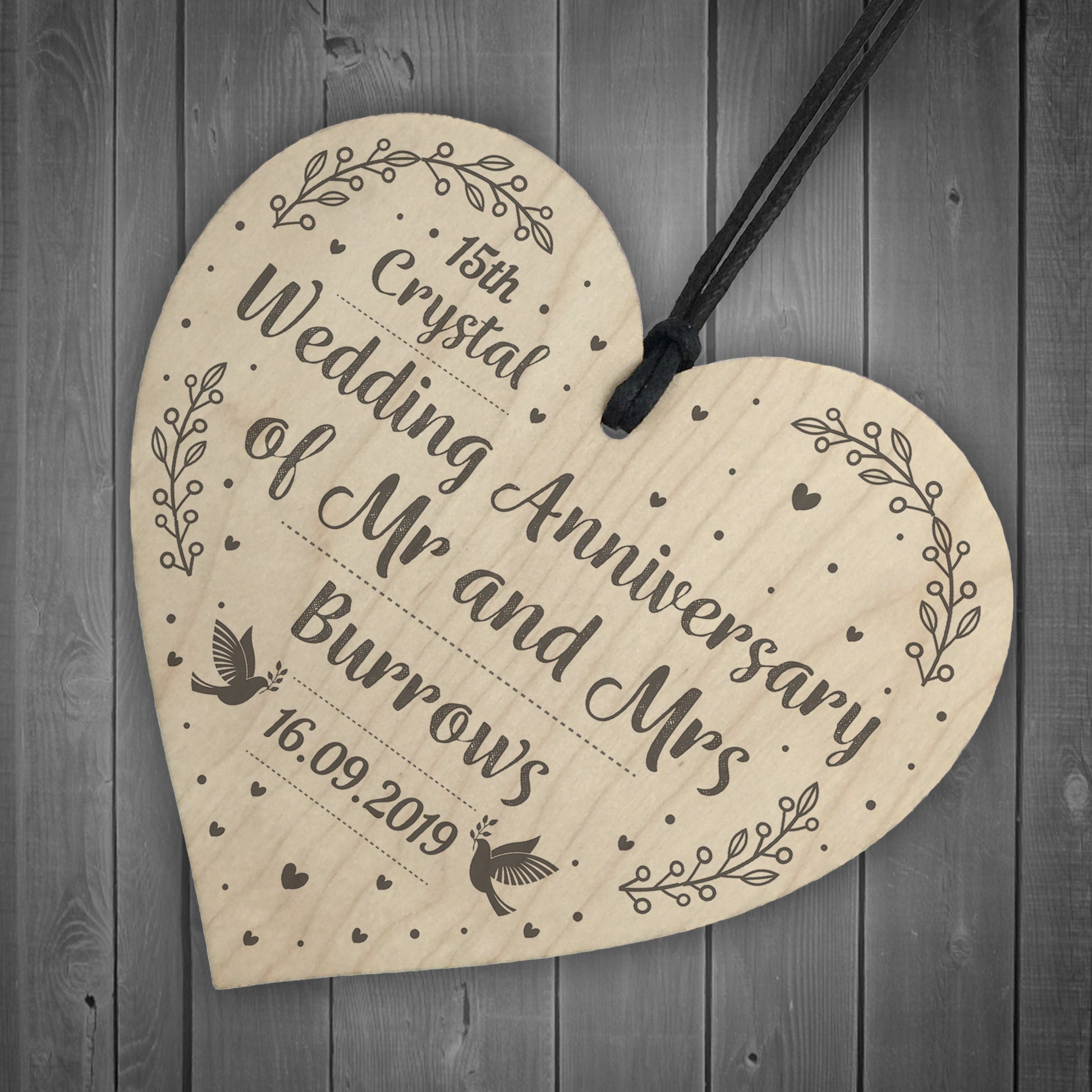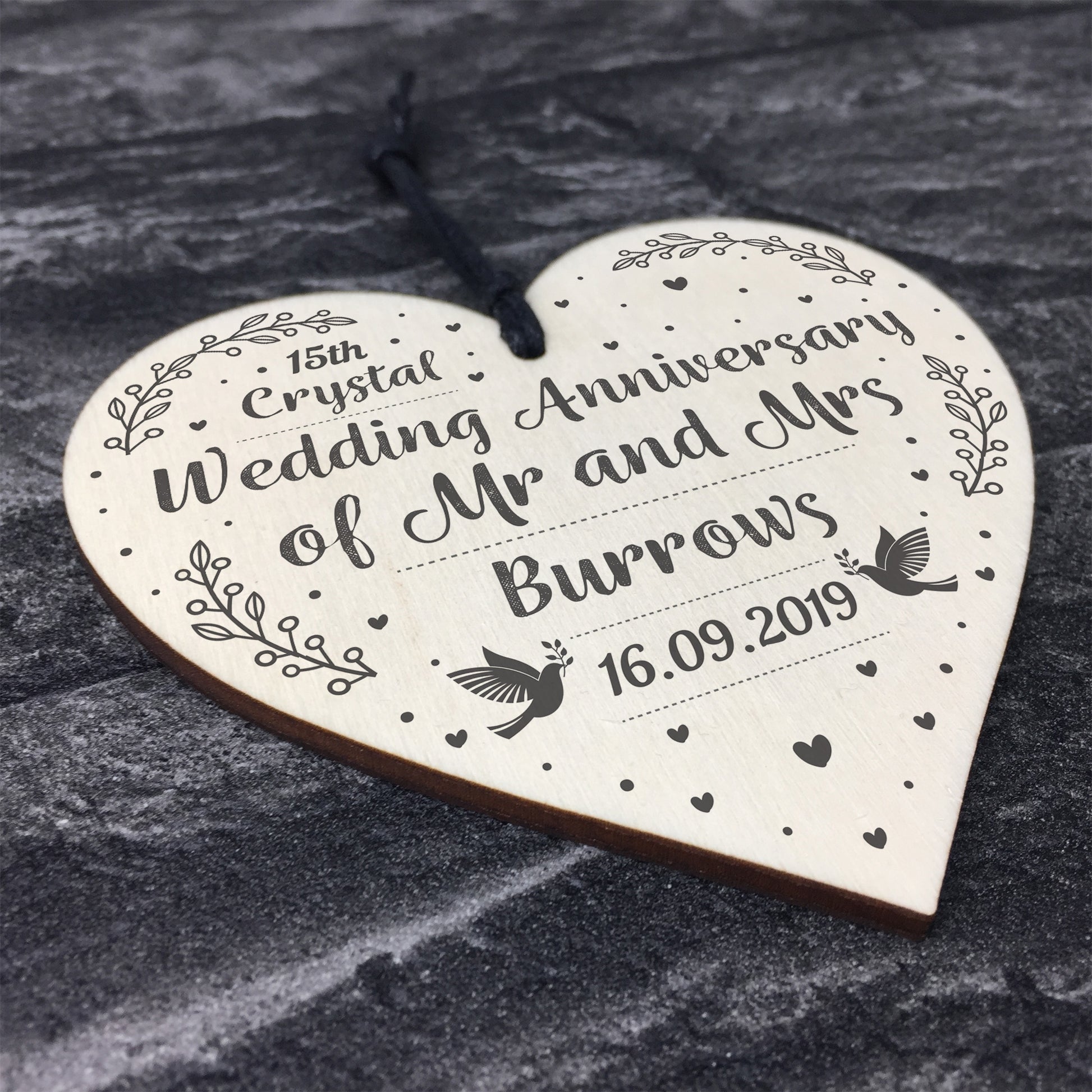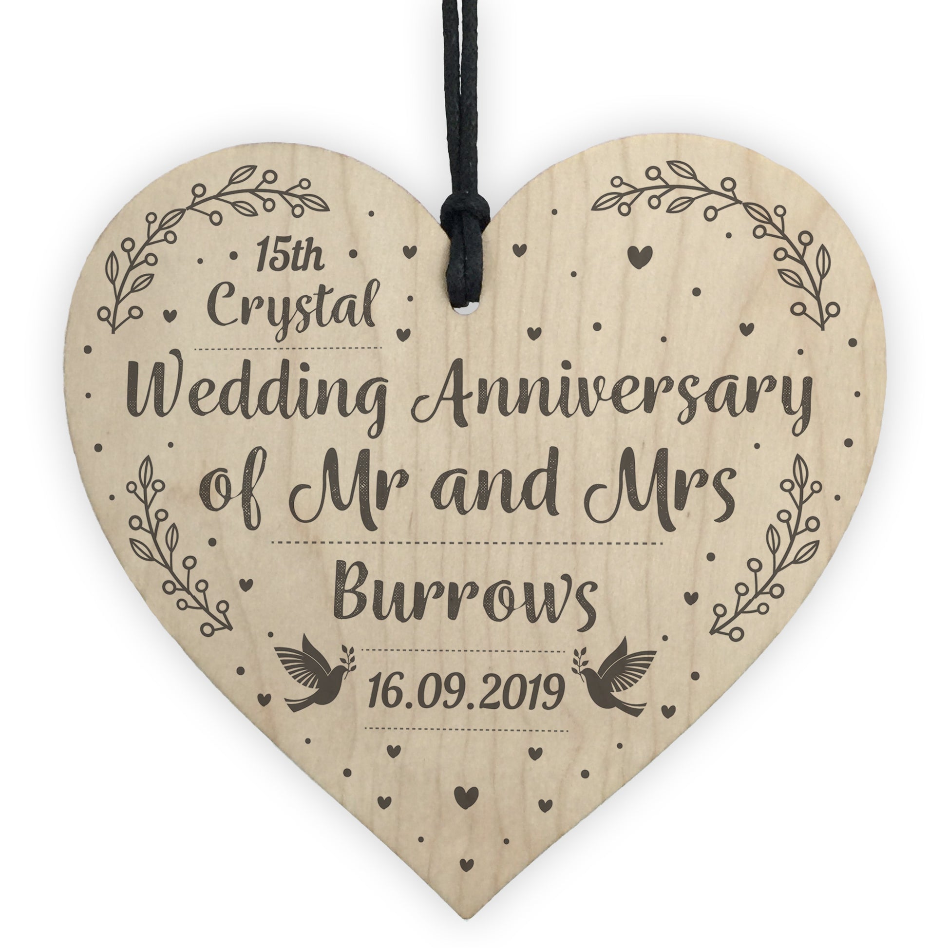 15th Crystal Wedding Anniversary Gift Personalised Heart Mr& Mrs