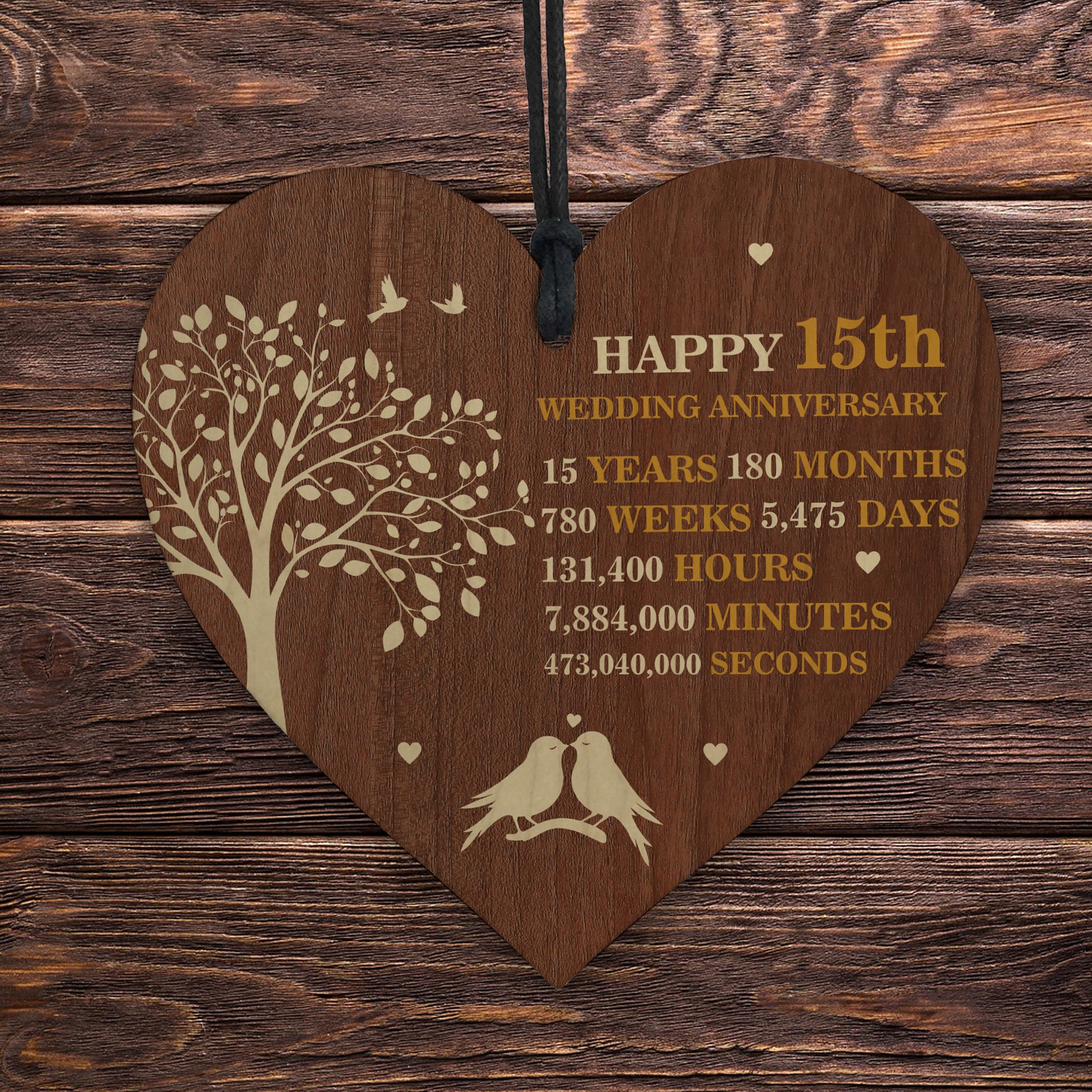 15th Wedding Anniversary Wooden Heart Plaque Dark Wood Sign