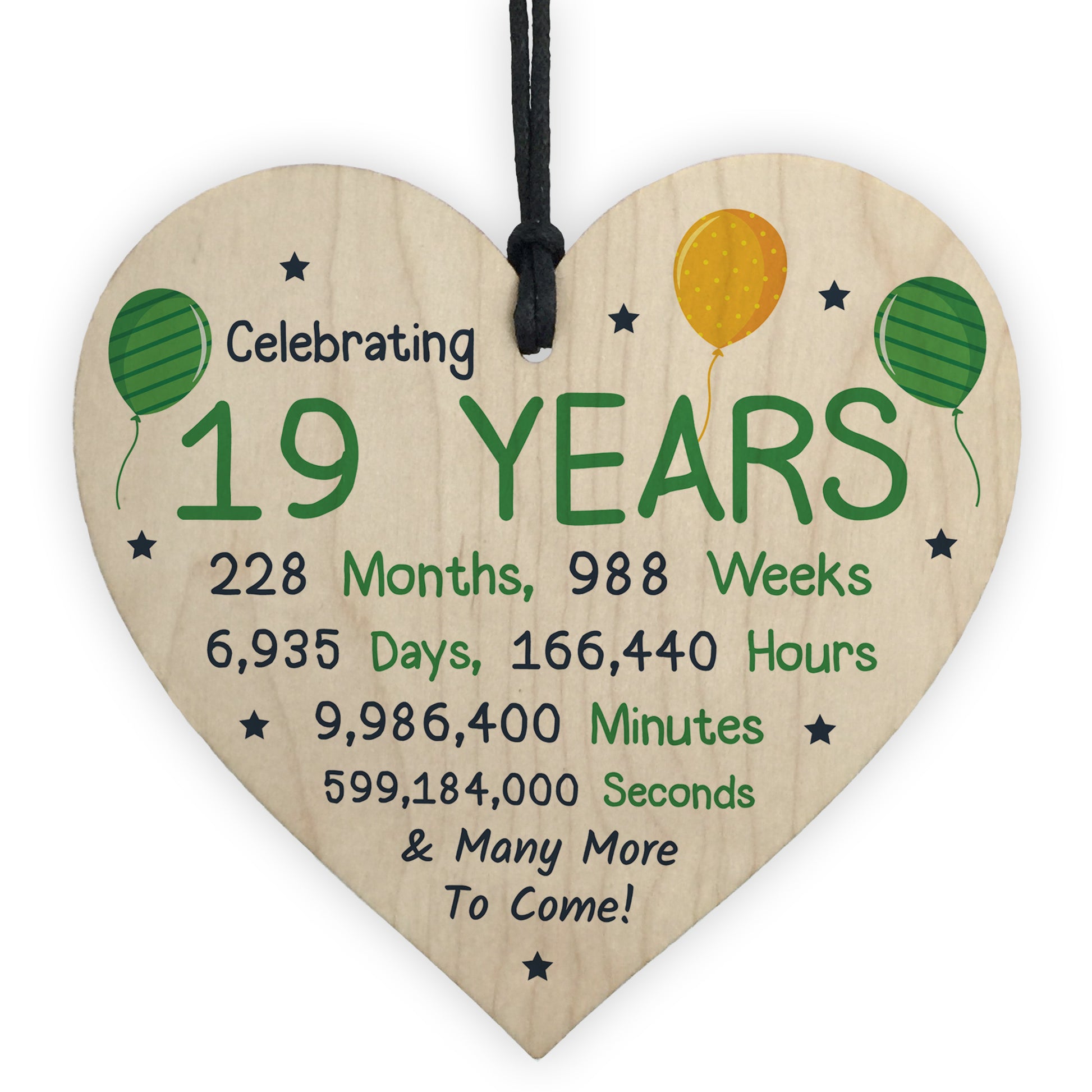 19th Birthday Novelty Wooden Heart Gift For Son Daughter Brother