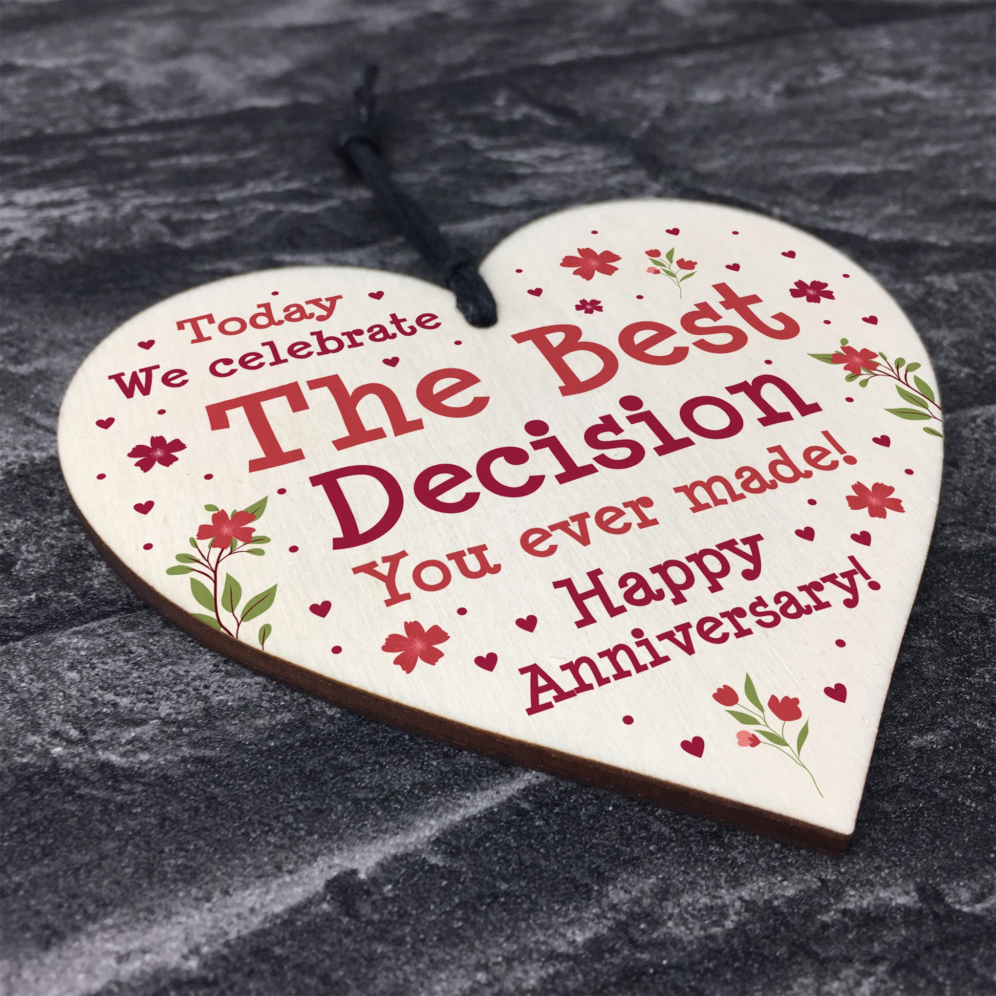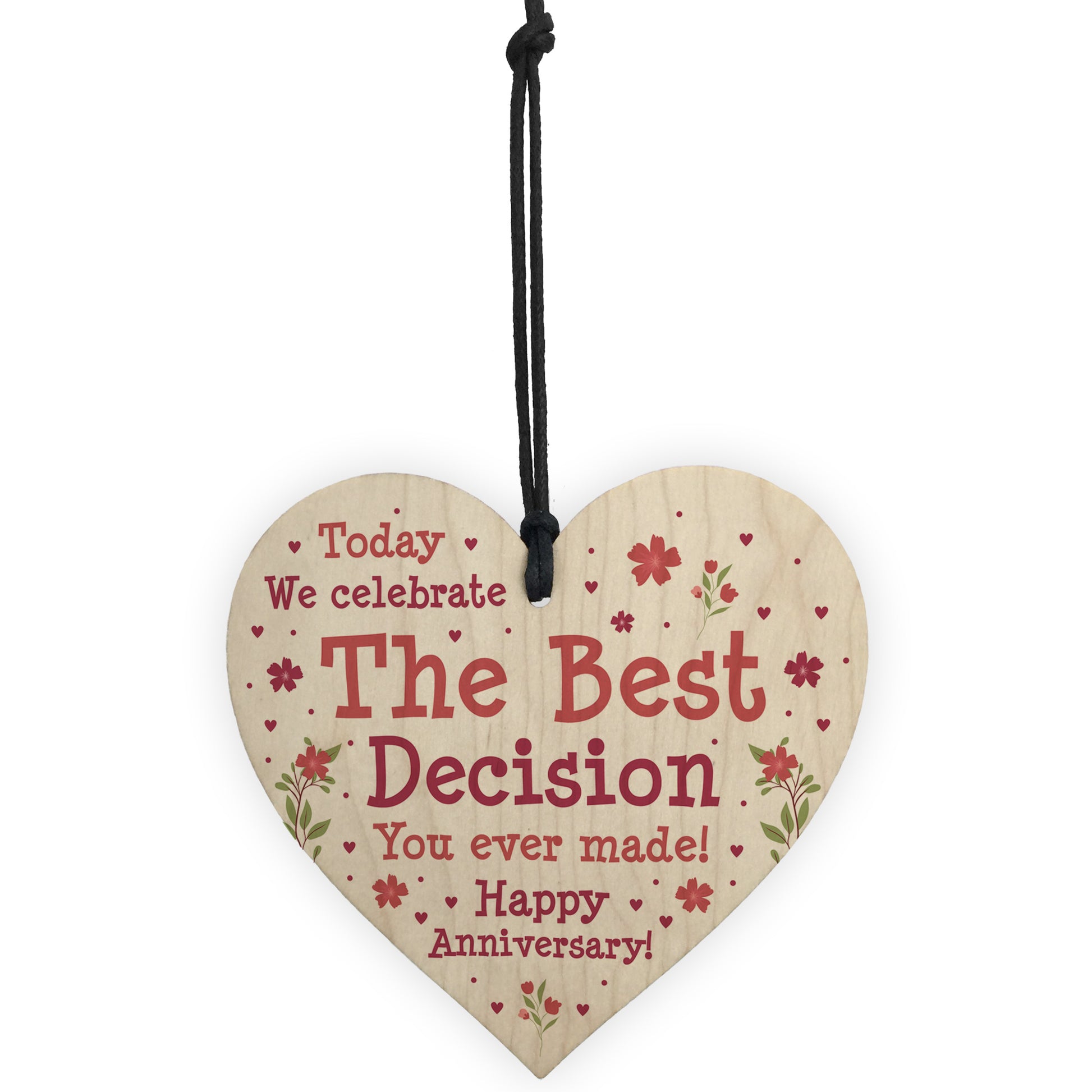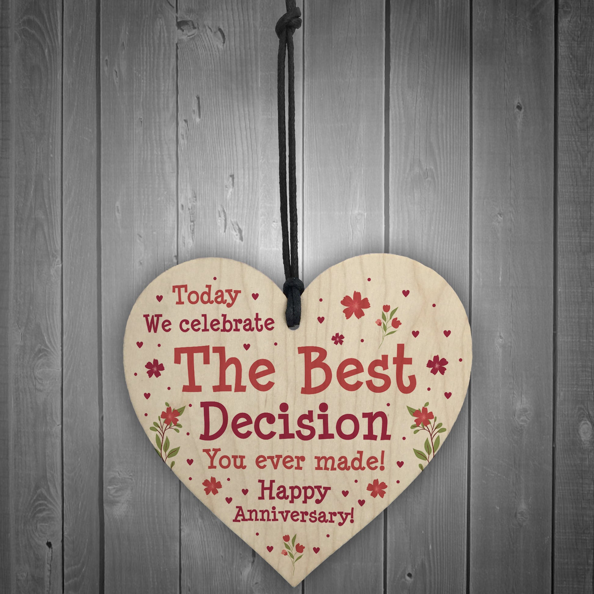 1st 2nd 5th 10th Anniversary Wooden Heart Husband Wife Boyfriend