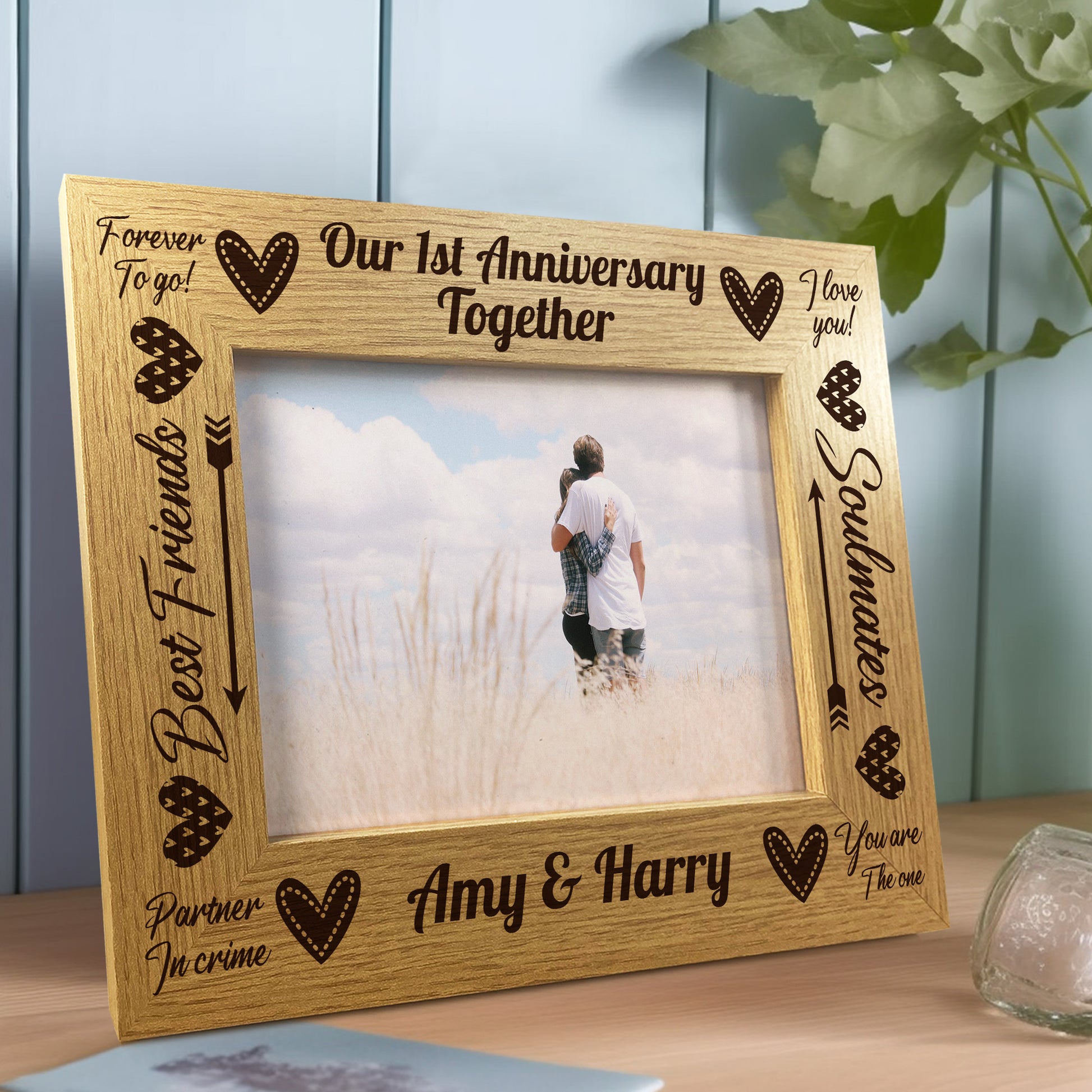 1st Anniversary 7x5 Wood Photo Frame First Anniversary Couple
