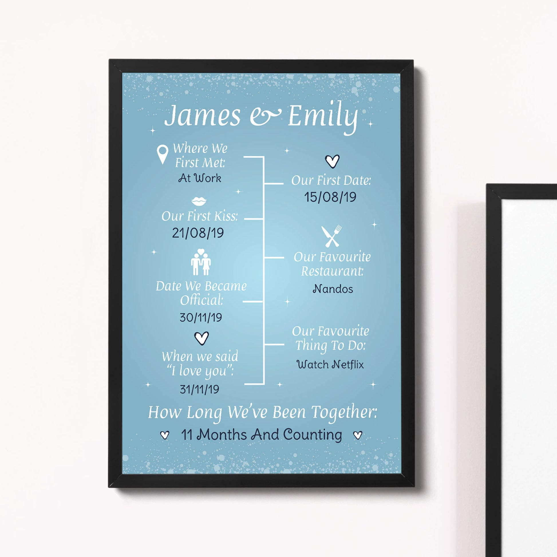 1st Anniversary Gift First Valentines Day Gift Framed Print Gift