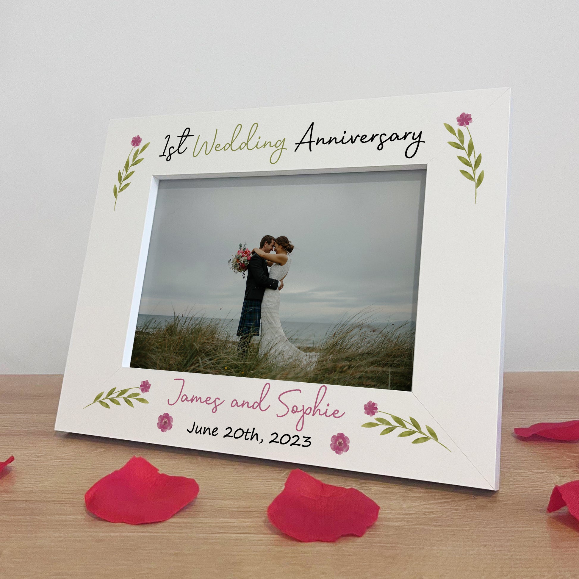 1st Anniversary Wedding Gifts Personalised 7x5 White Frame