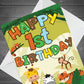 1st Birthday Jungle Animal Card for Boys Girls 1 Year Old Card