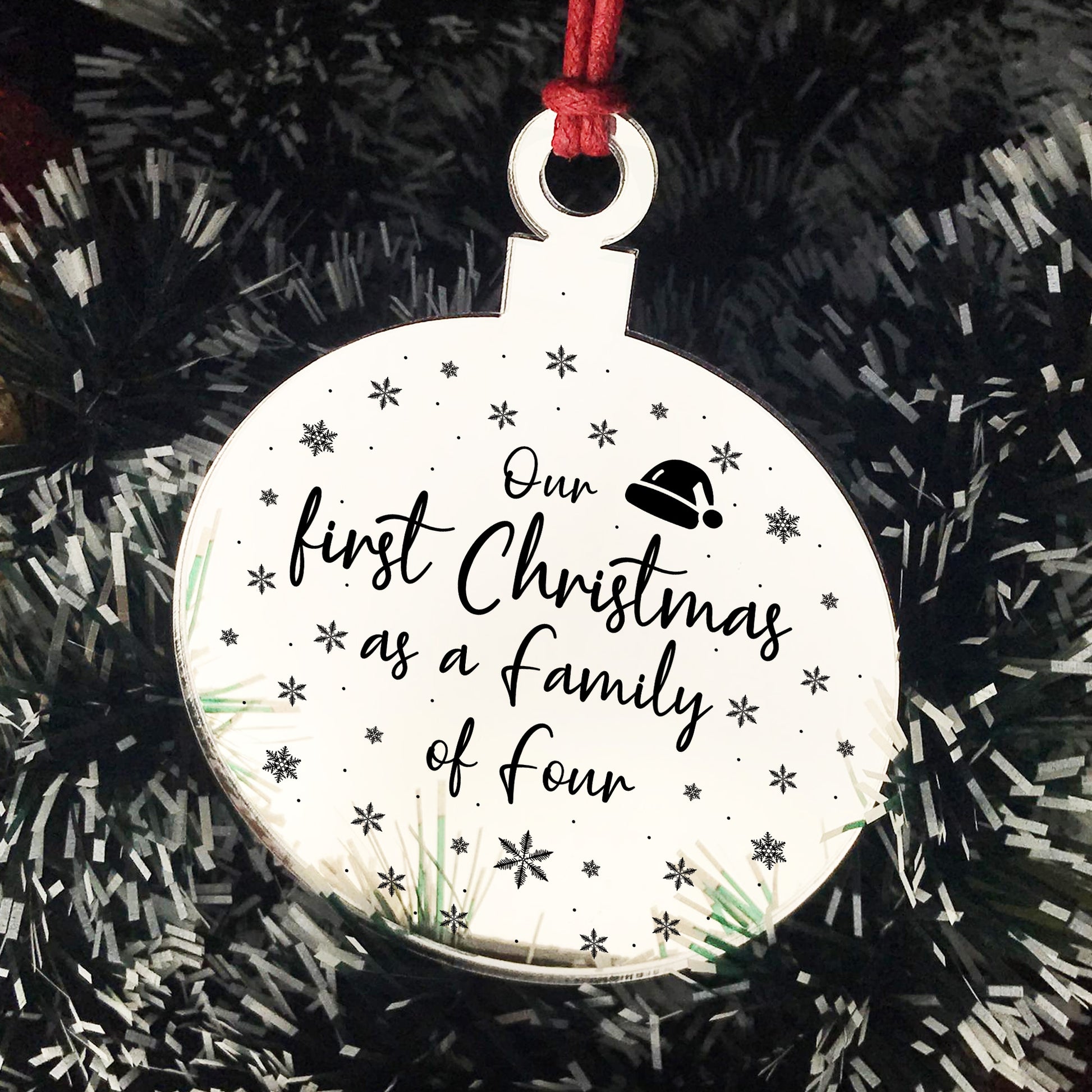 1st Christmas As A Family Of Four Engraved Tree Decoration