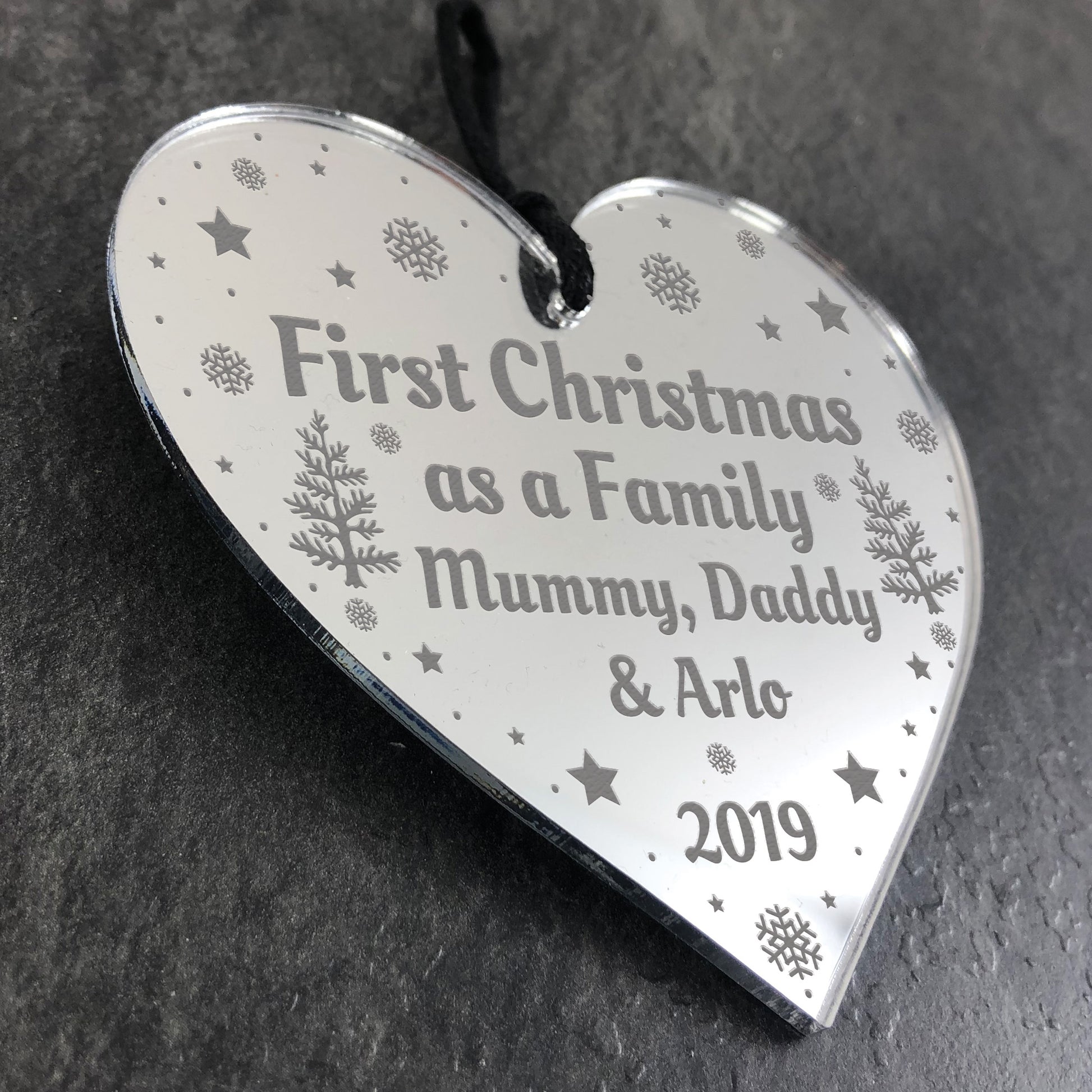1st Christmas As A Family Personalised Acrylic Heart Xmas Gift