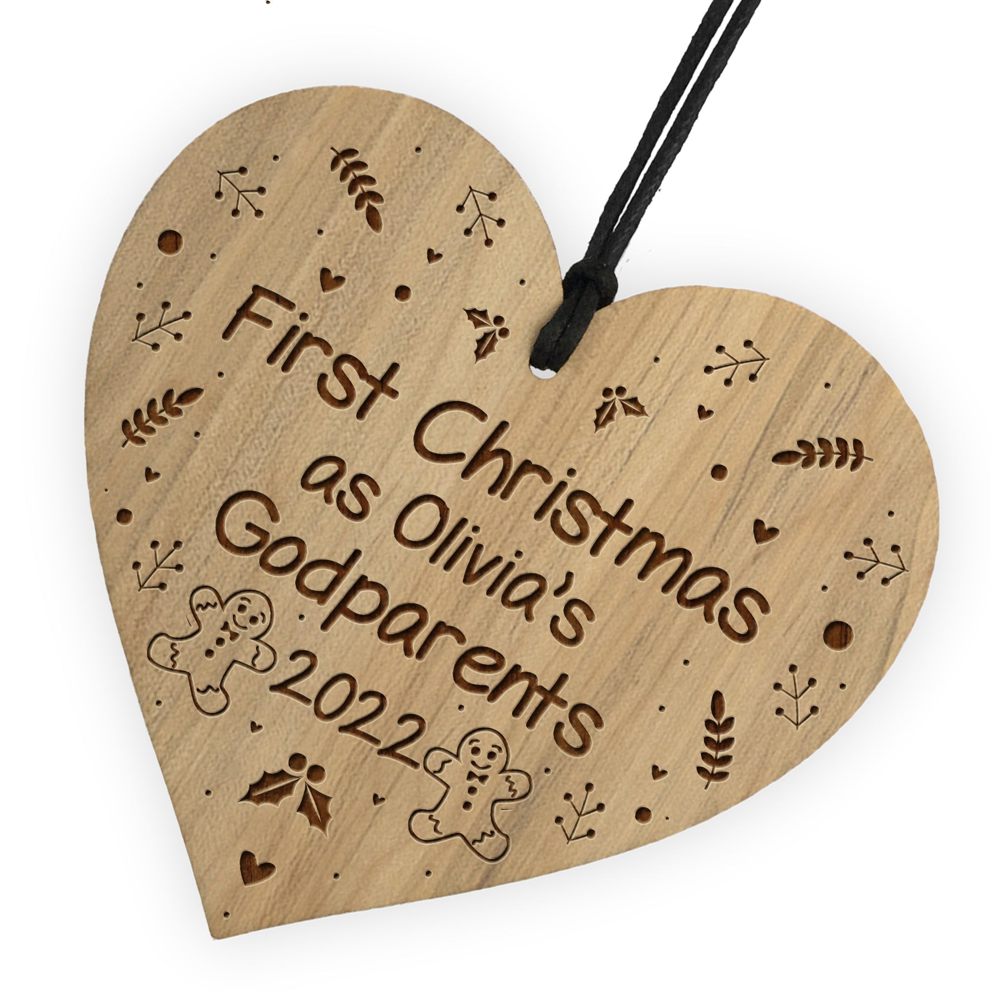1st Christmas As Godparents Decoration Engraved Wood Decoration