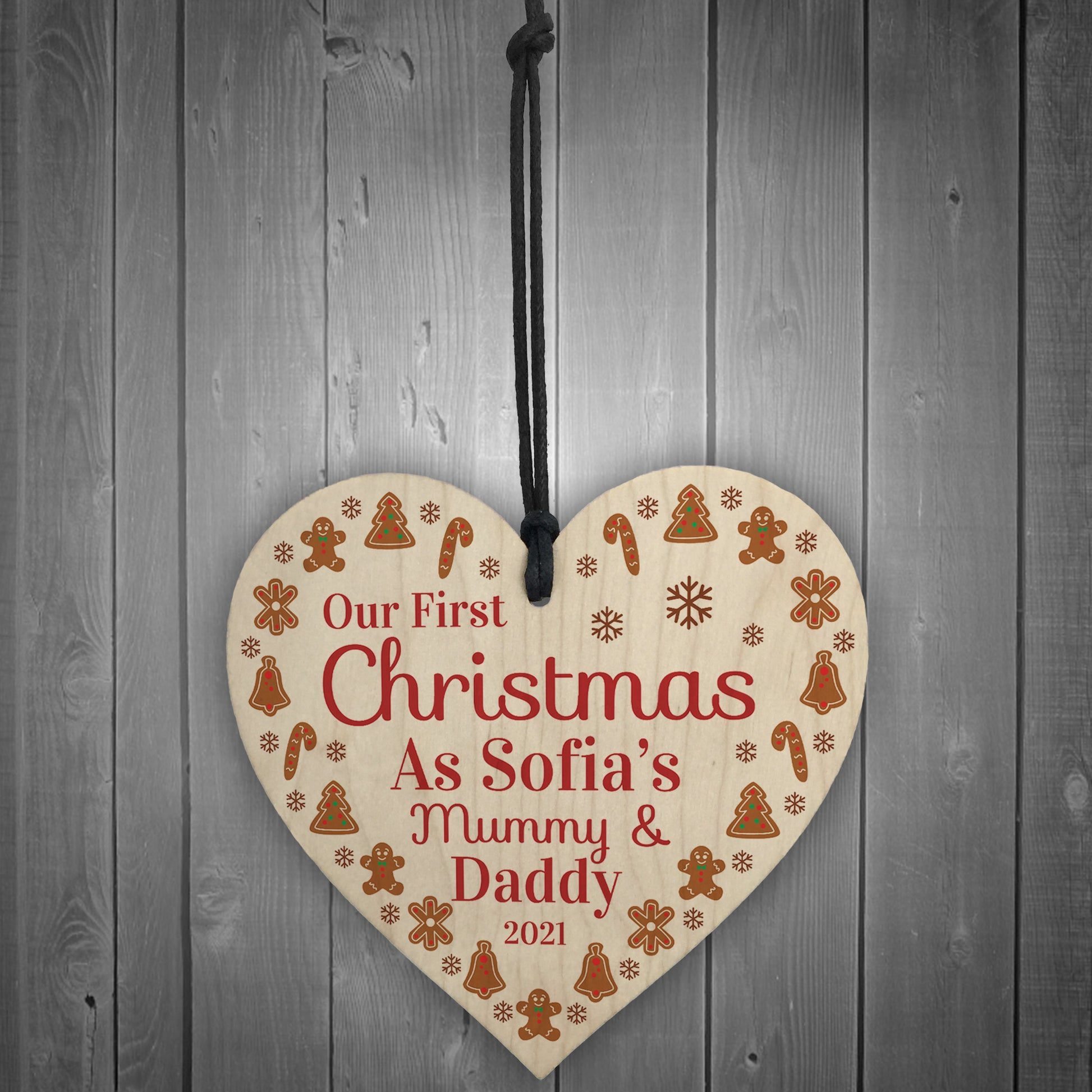 1st Christmas As Mummy And Daddy Baby Wooden Heart Personalised