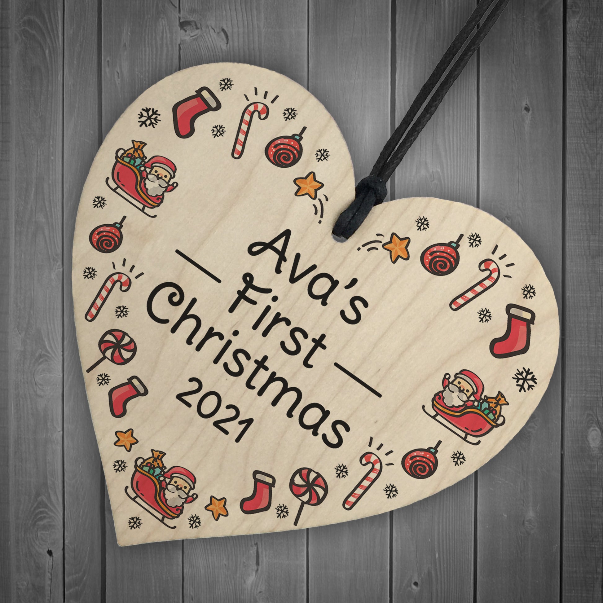 1st Christmas Bauble Tree Decoration Personalised New Baby Heart