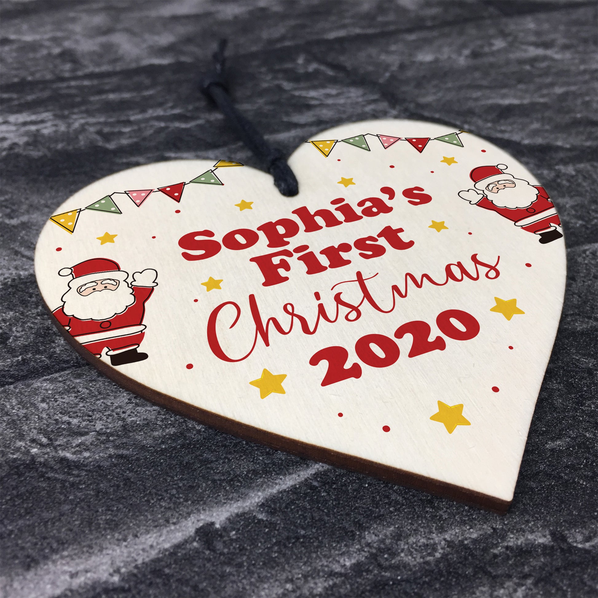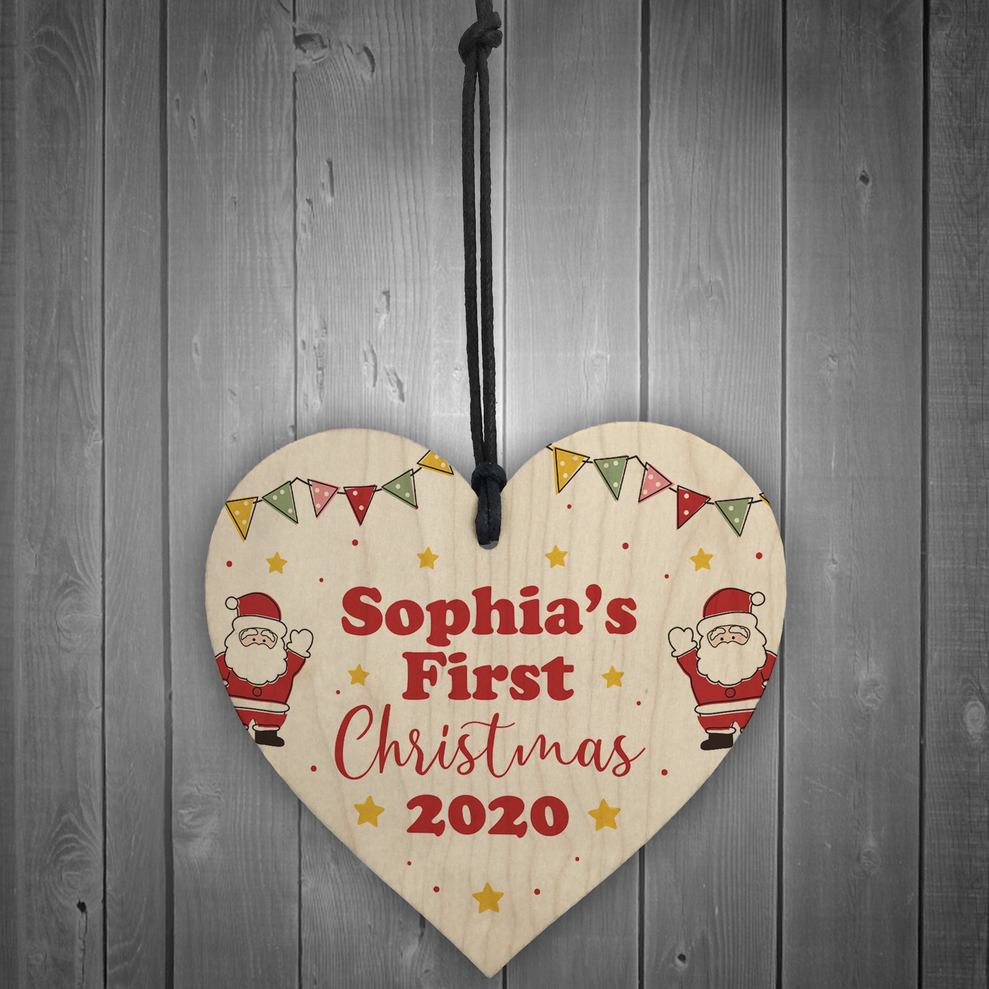 1st Christmas Decoration Wood Heart New Baby Gift Personalised