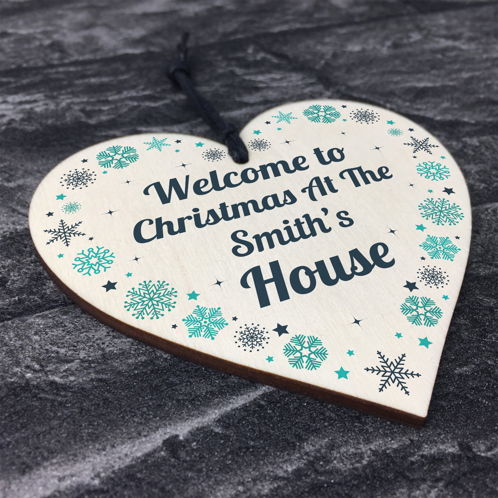1st Christmas In New Home Wooden Heart Welcome To Xmas