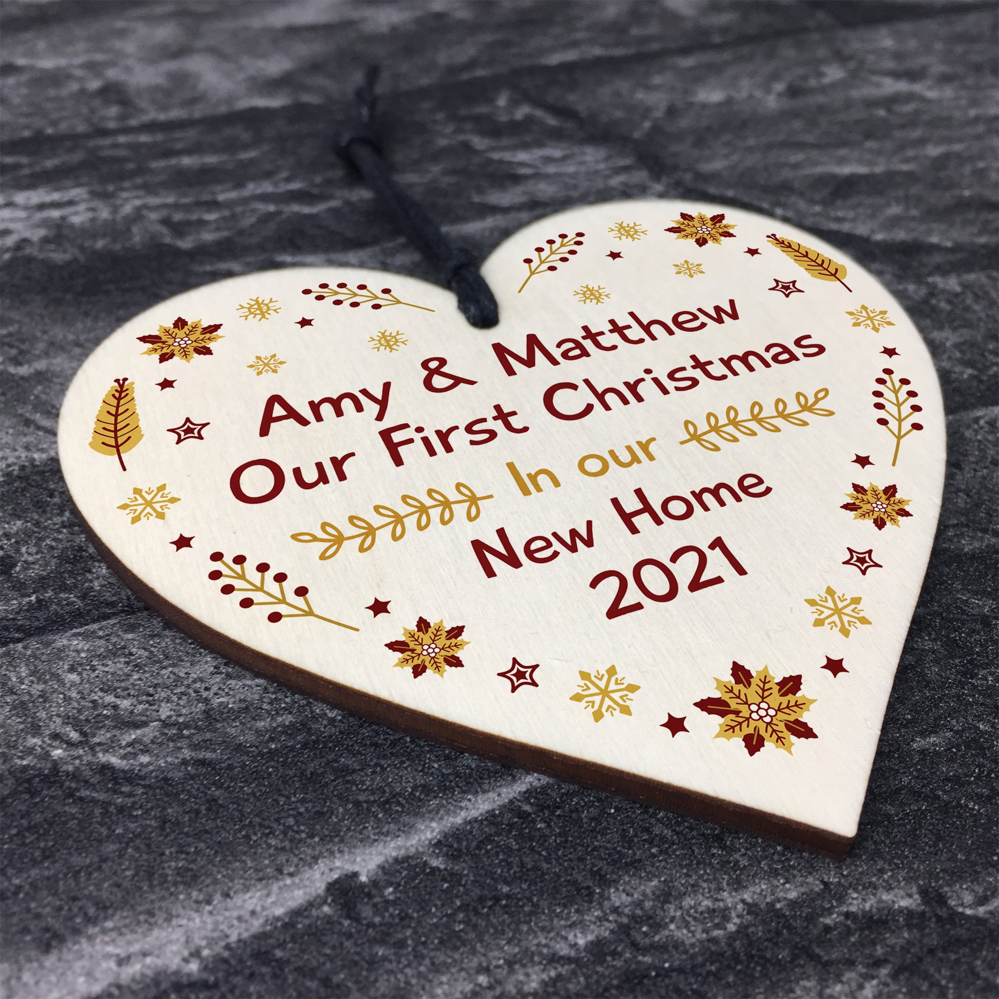 The sign is made from high quality, and the design is permanently printed into the heart. The wooden heart is supplied with waxed cotton rope in both black and red colours to allow easy hanging and looks great in any room of the house.