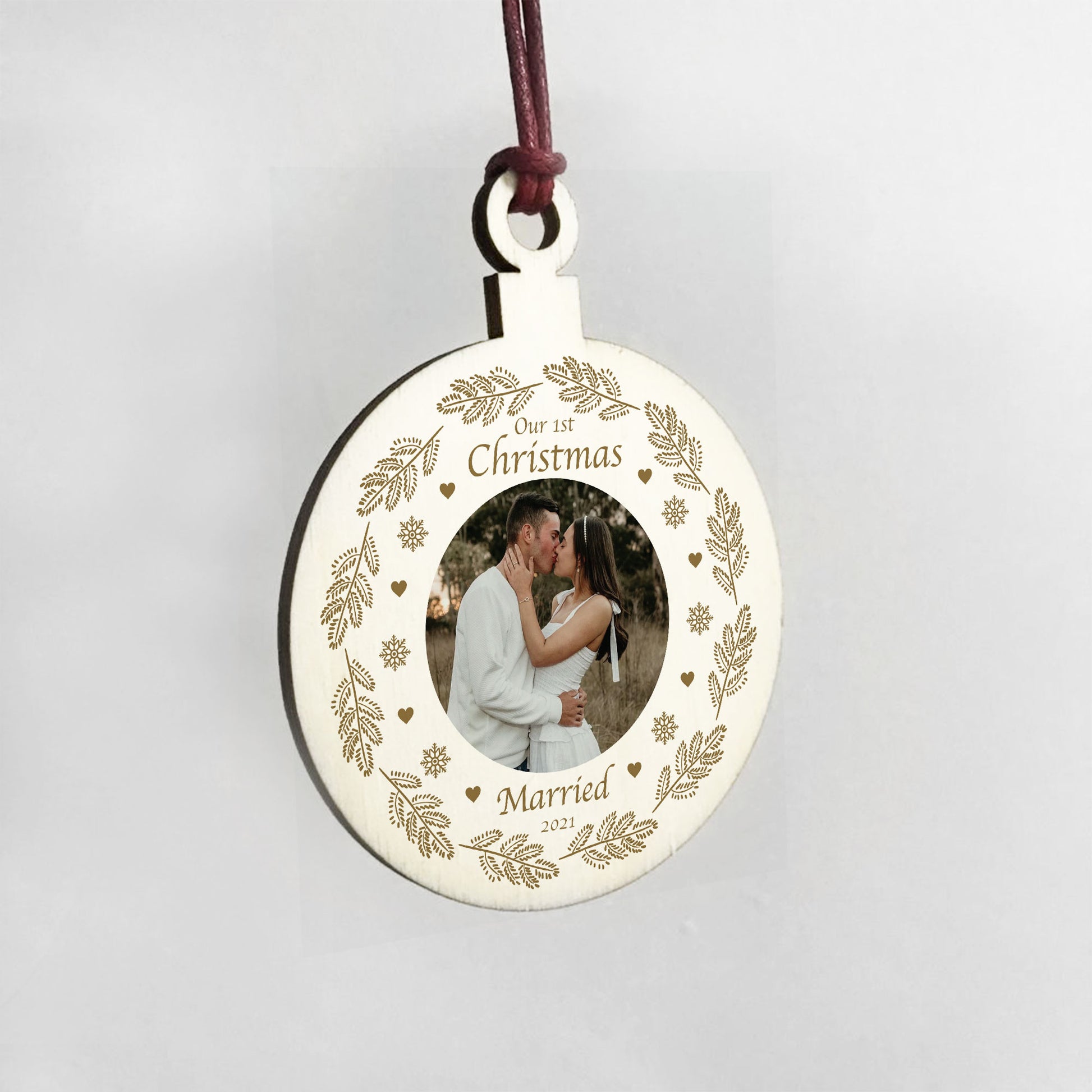 1st Christmas Married Bauble Personalised Photo Hanging Bauble