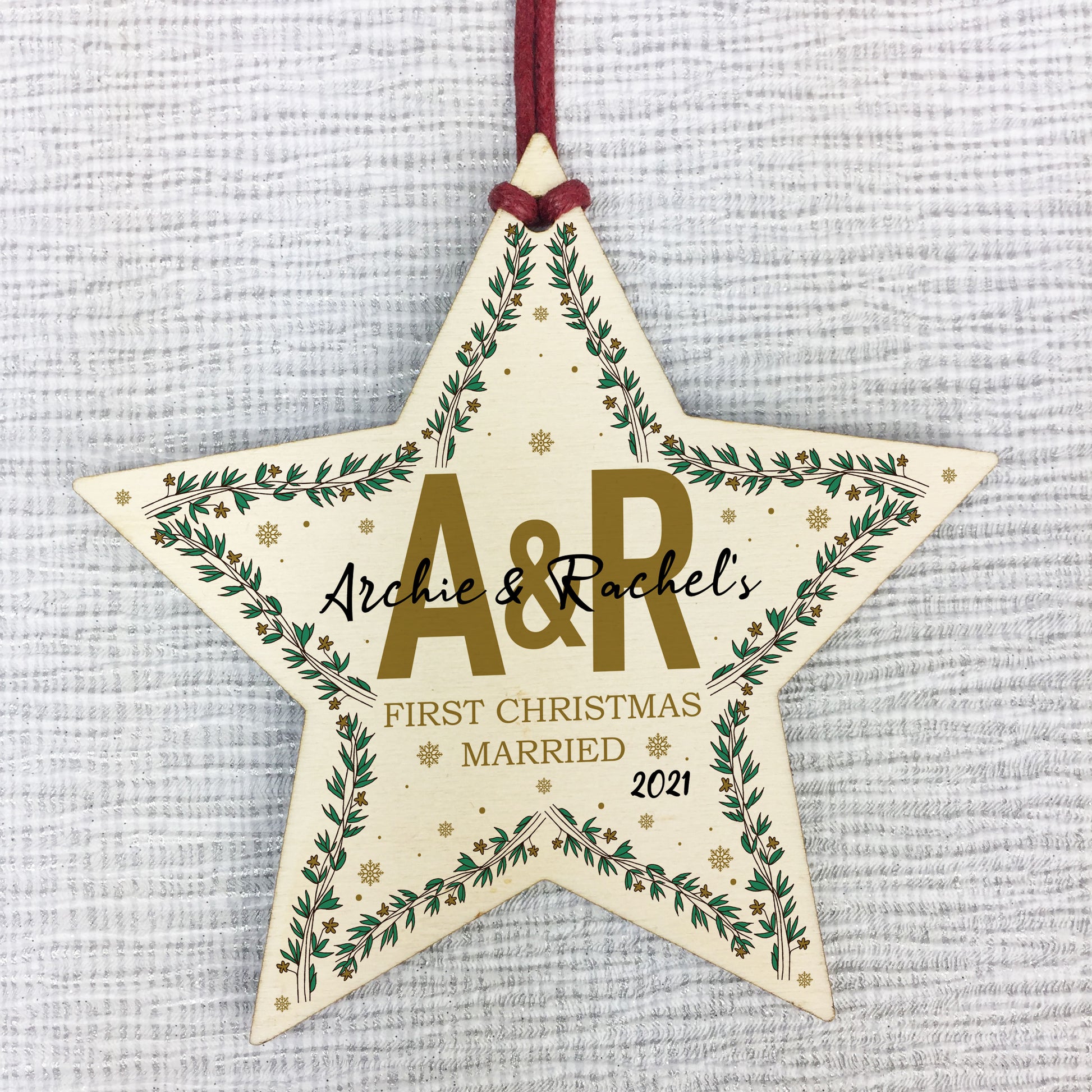 1st Christmas Married Personalised Wooden Star Tree Decoration
