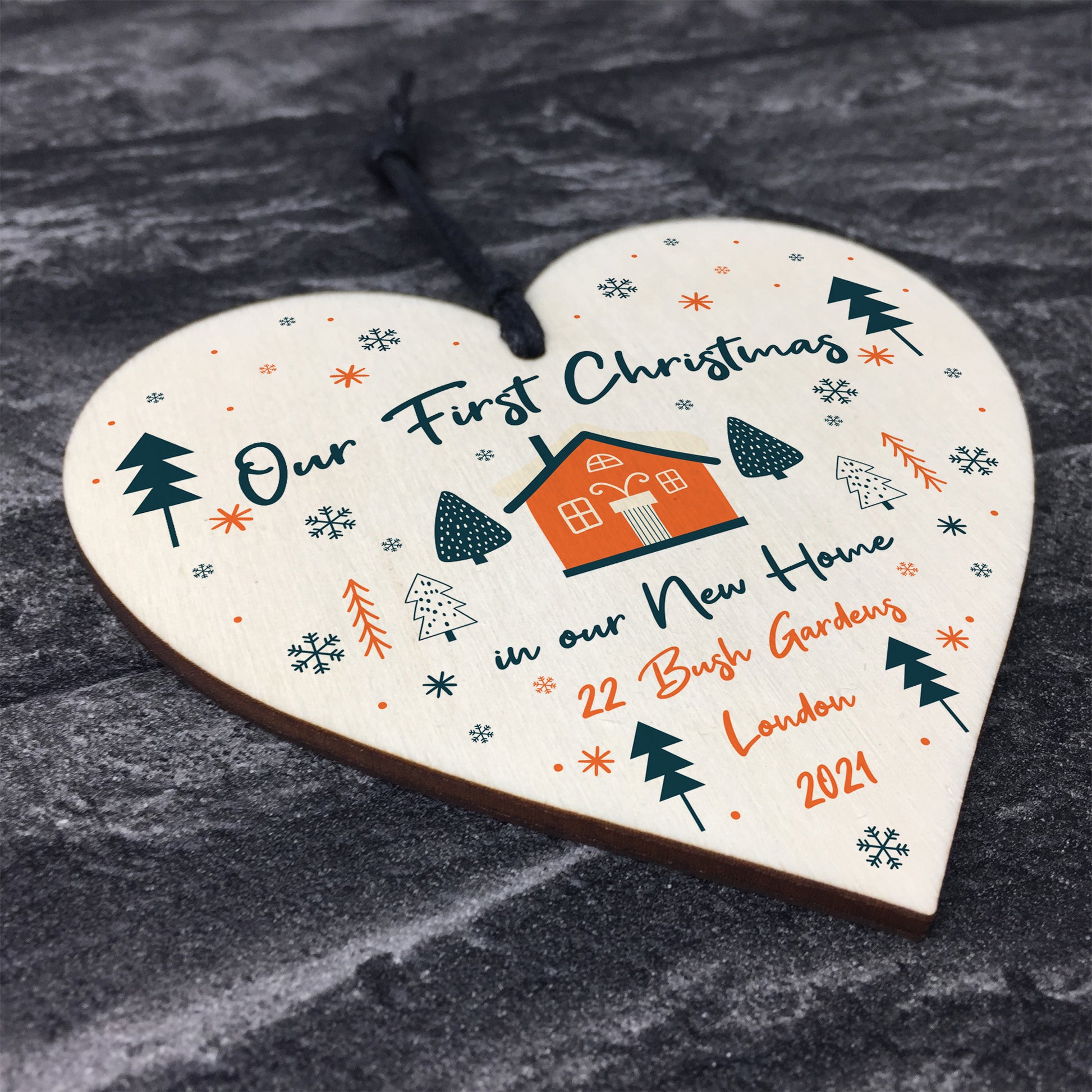 1st Christmas New Home Tree Decoration Personalised Wood Bauble