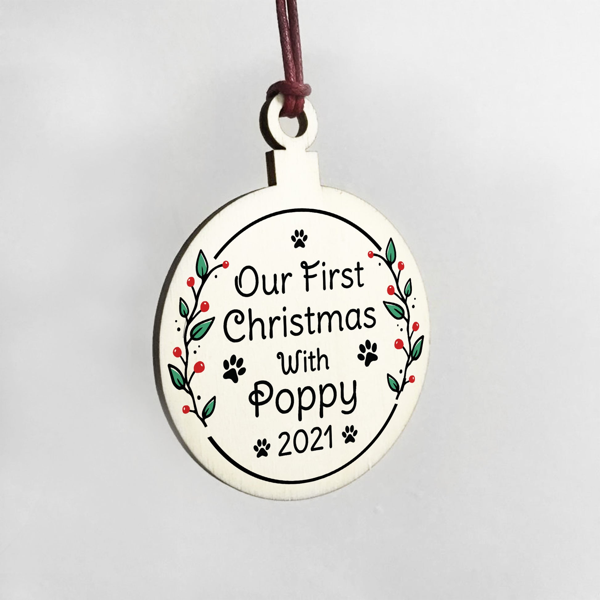 1st Christmas With Dog Puppy Personalised Wood Hanging Bauble