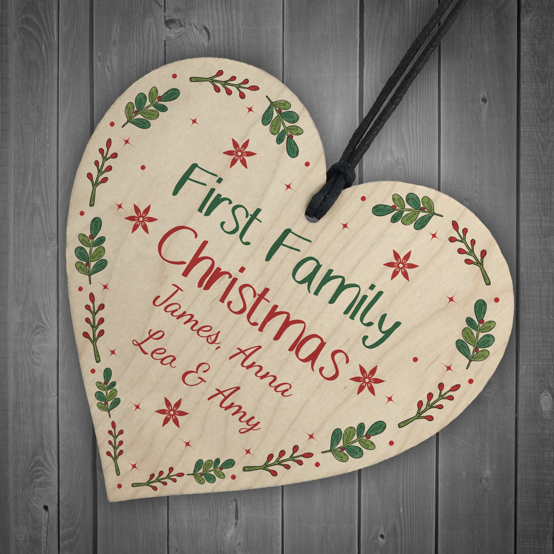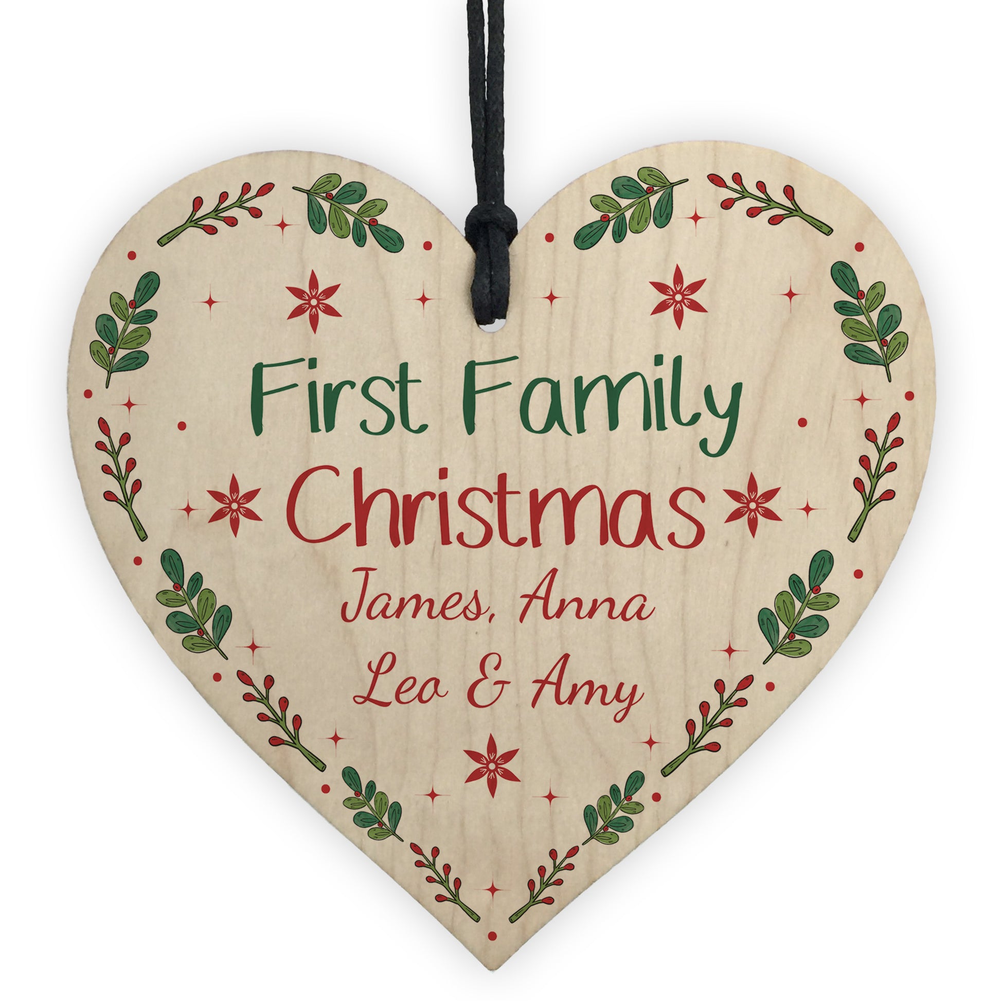 1st Family Christmas Bauble Wooden Heart 1st Christmas Bauble