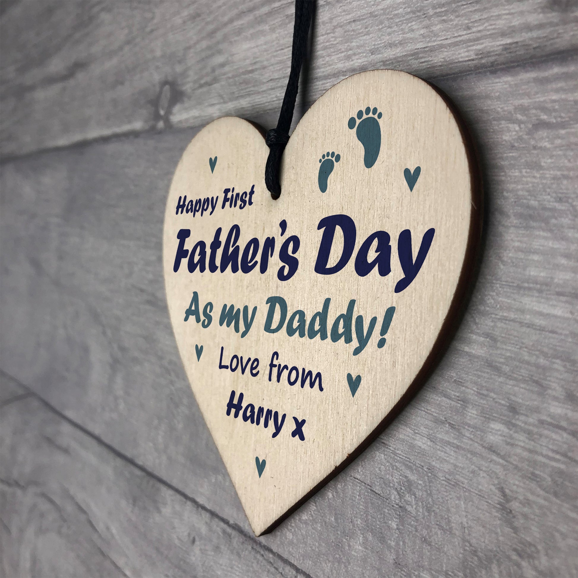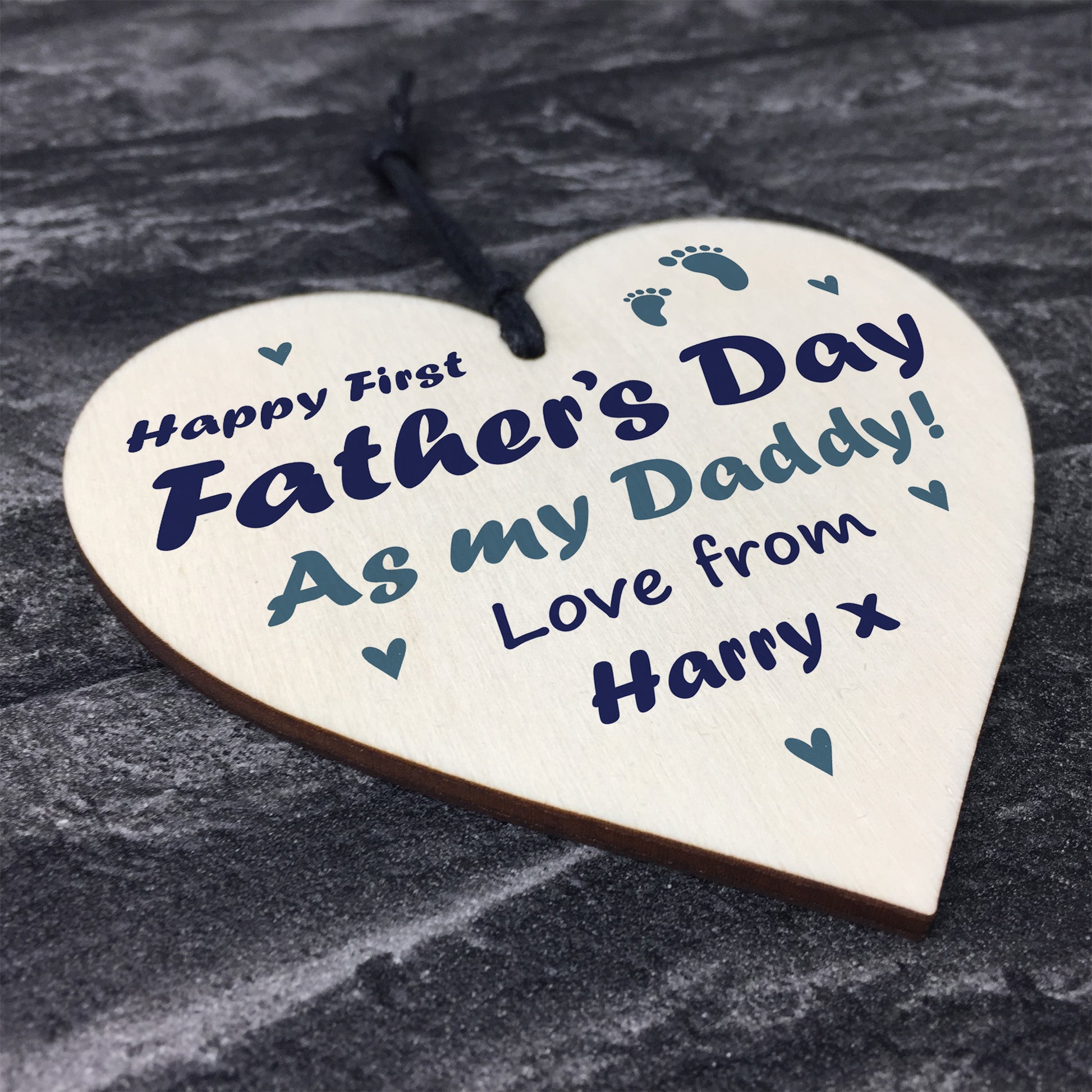 1st Fathers Day Gift For Daddy Personalised Wood Heart Gift