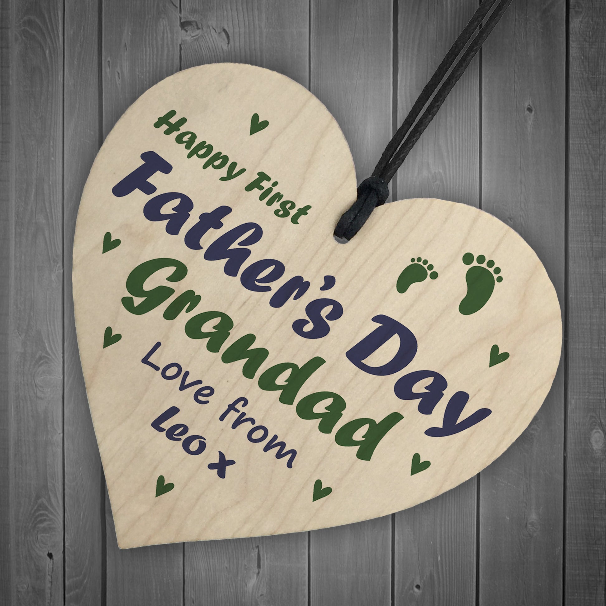 1st Fathers Day Gift For Grandad Personalised Wood Heart Gift