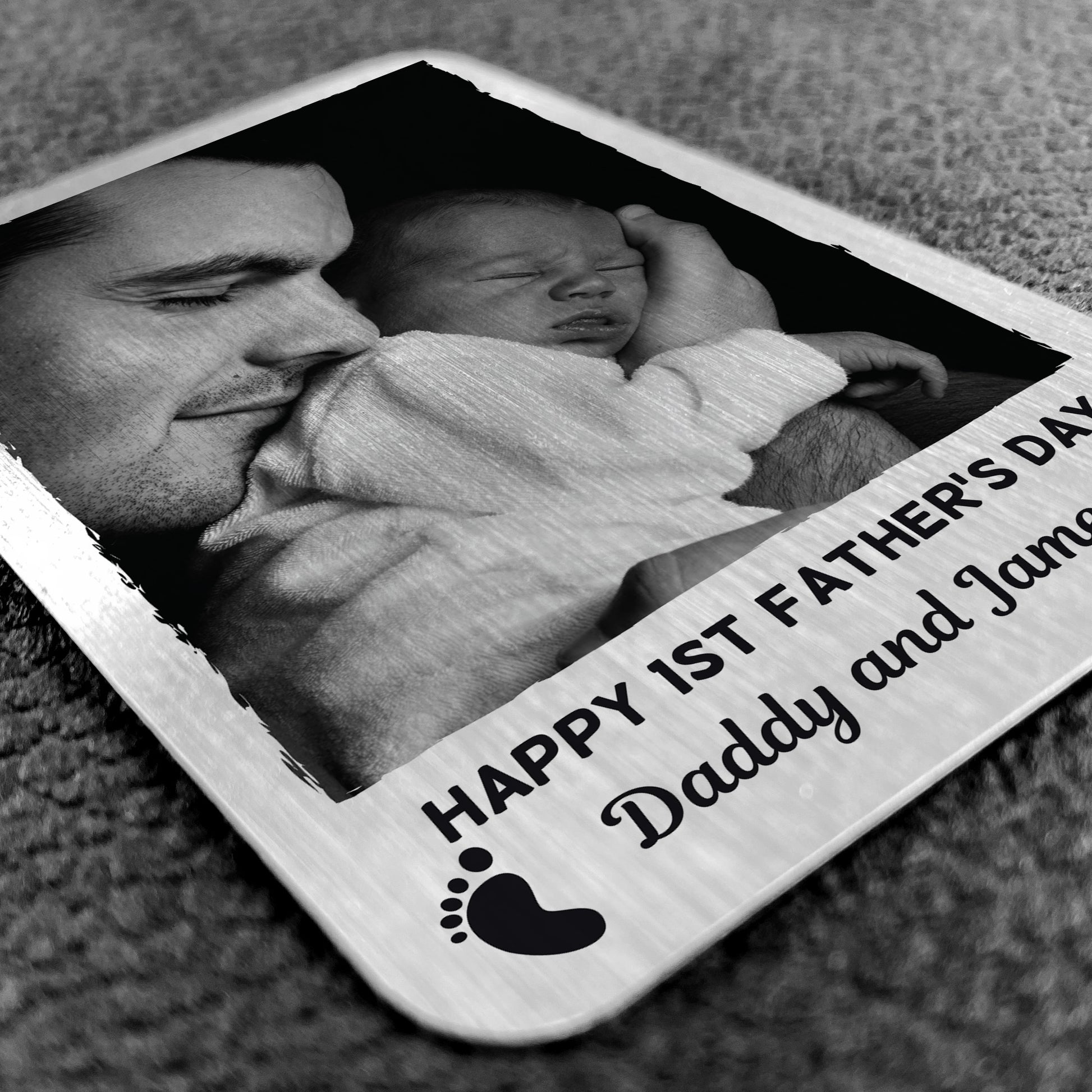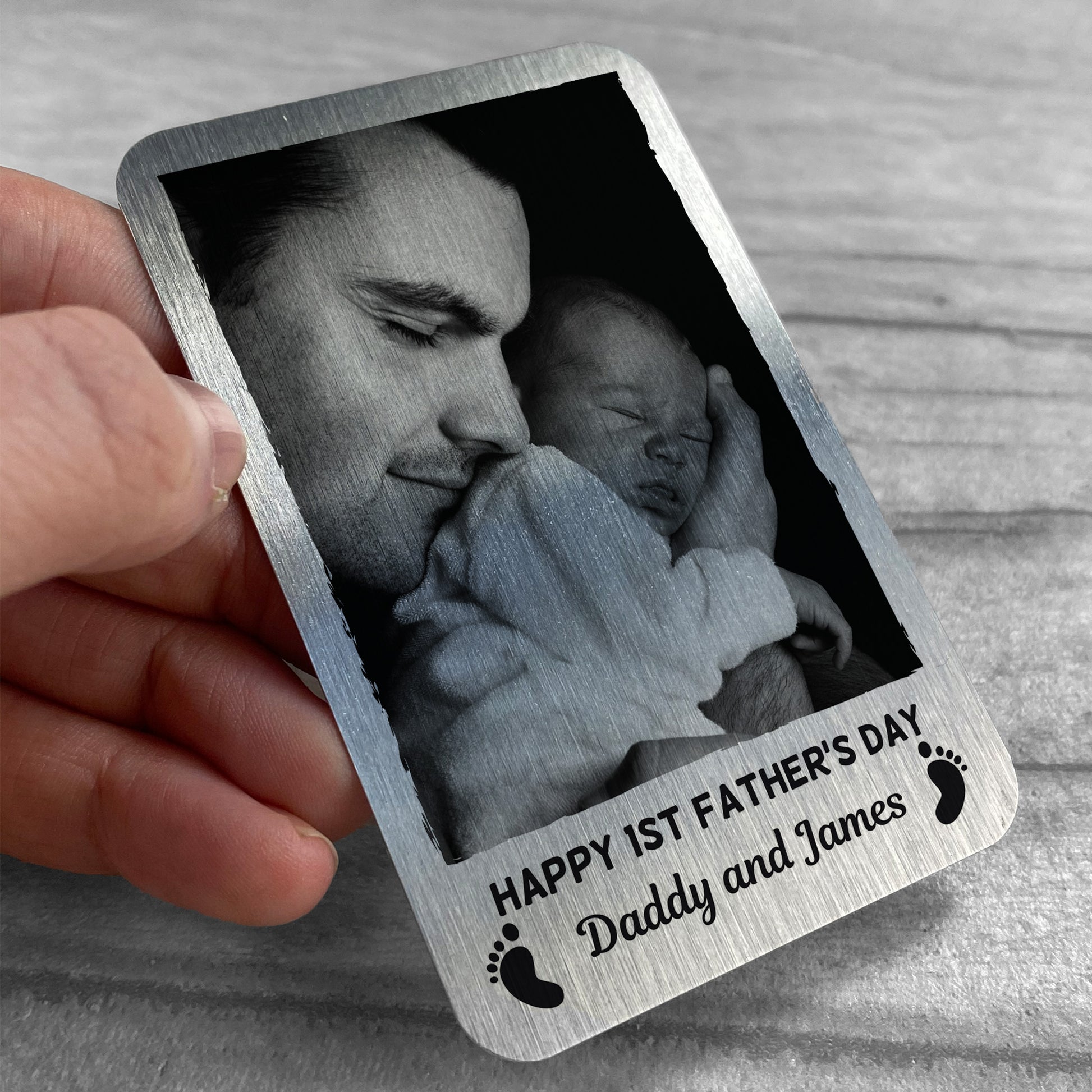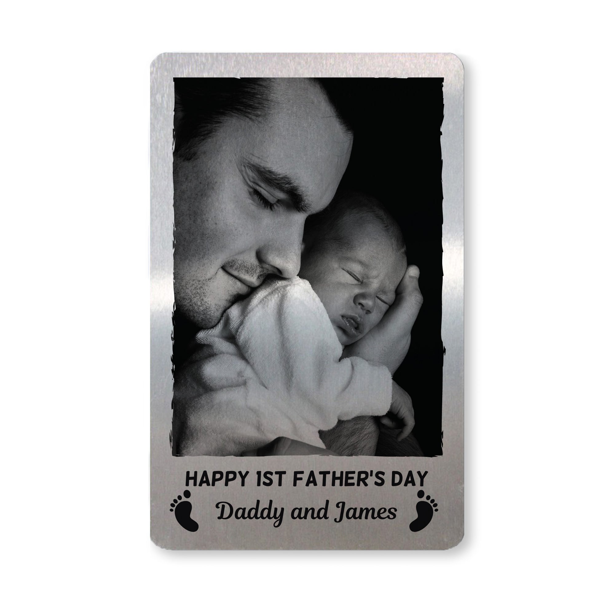 1st Fathers Day Gift Personalised Metal Card New Baby Boy Girl