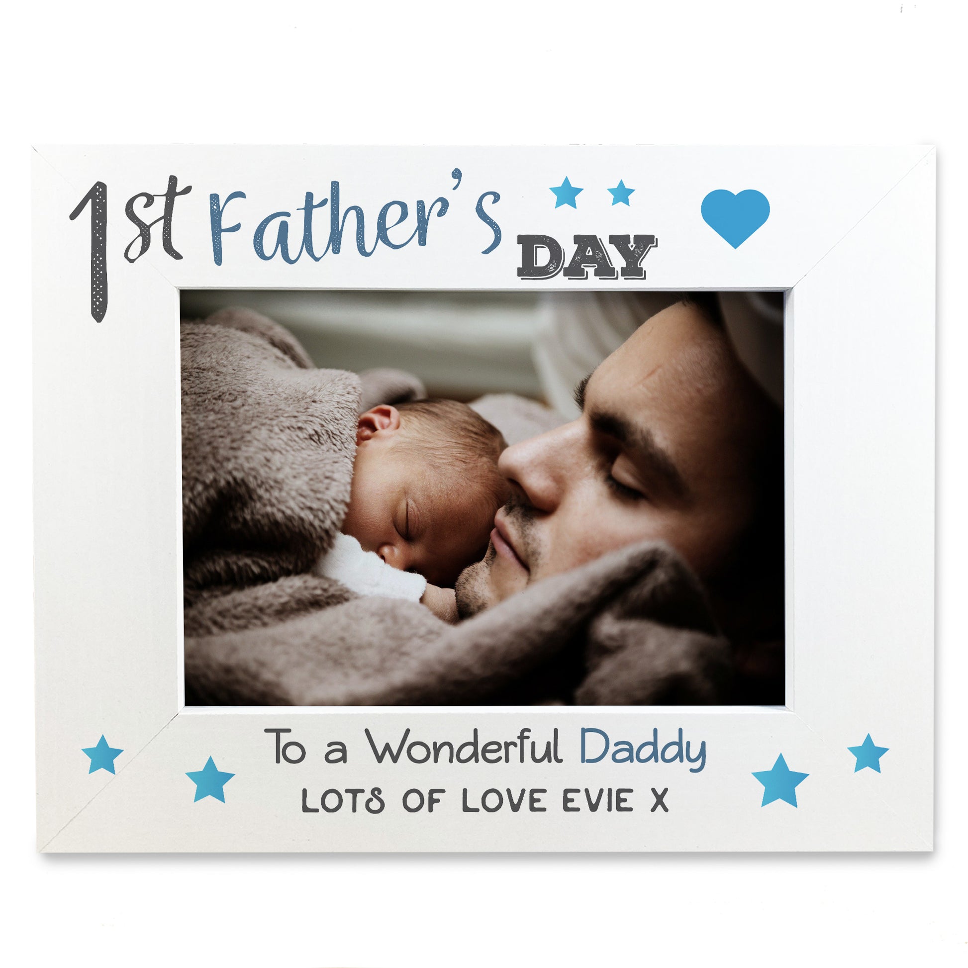 1st Father's Day Gifts For Daddy Personalised 7x5 White Wooden