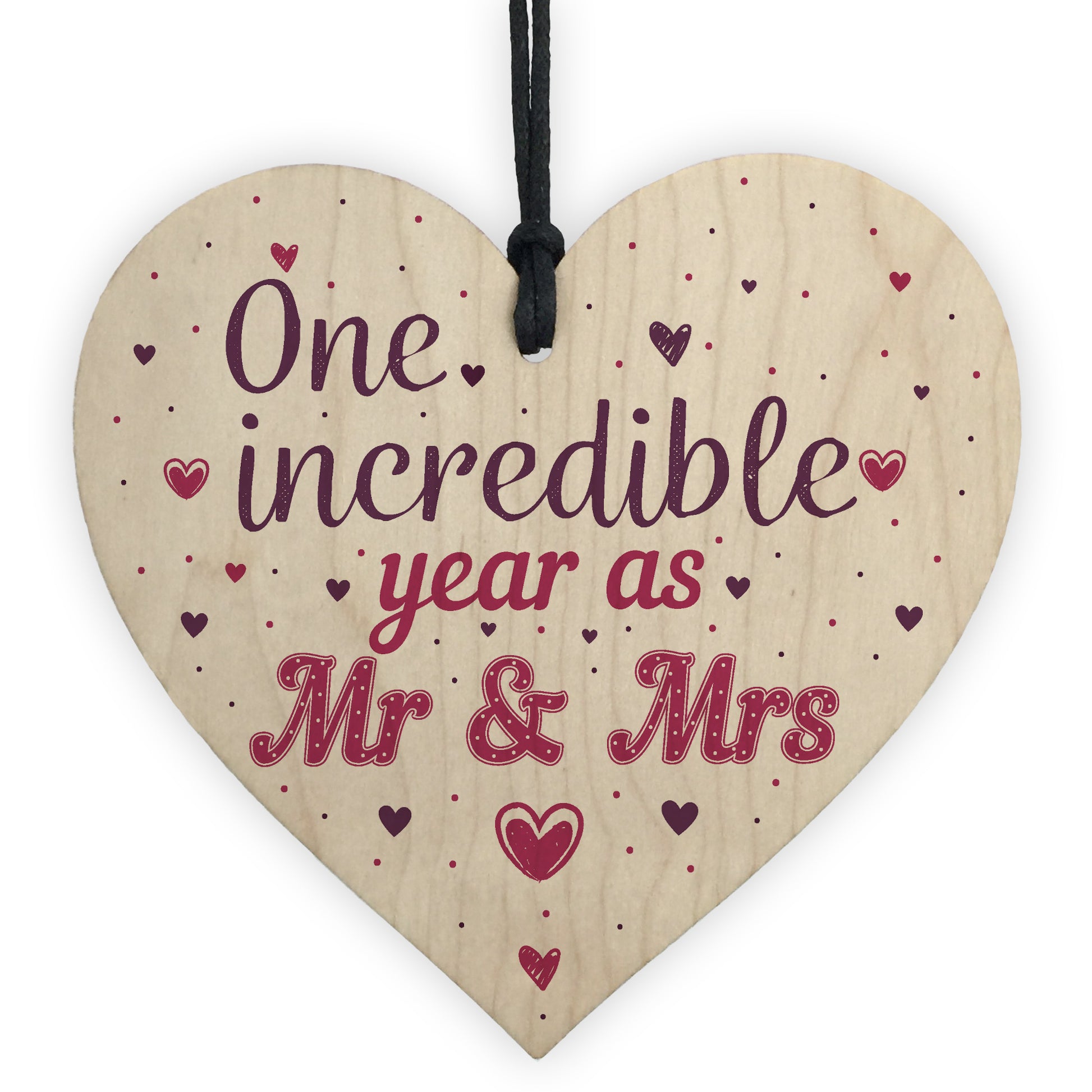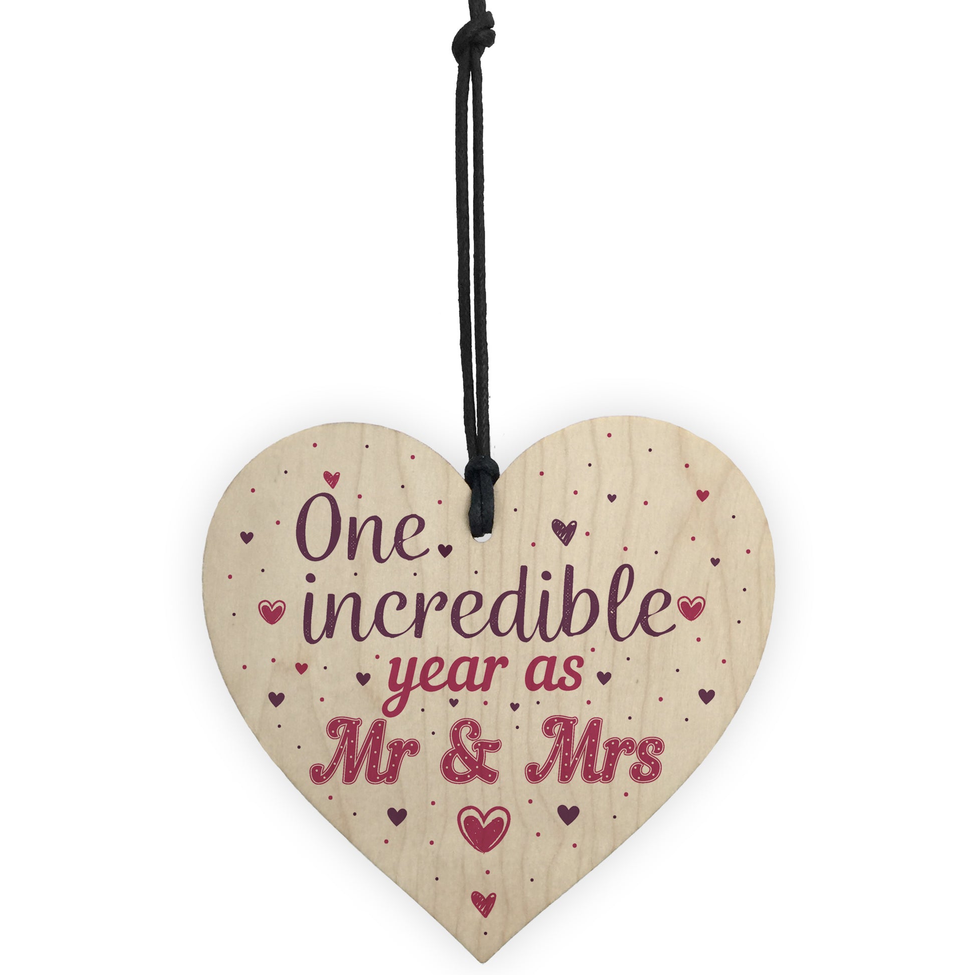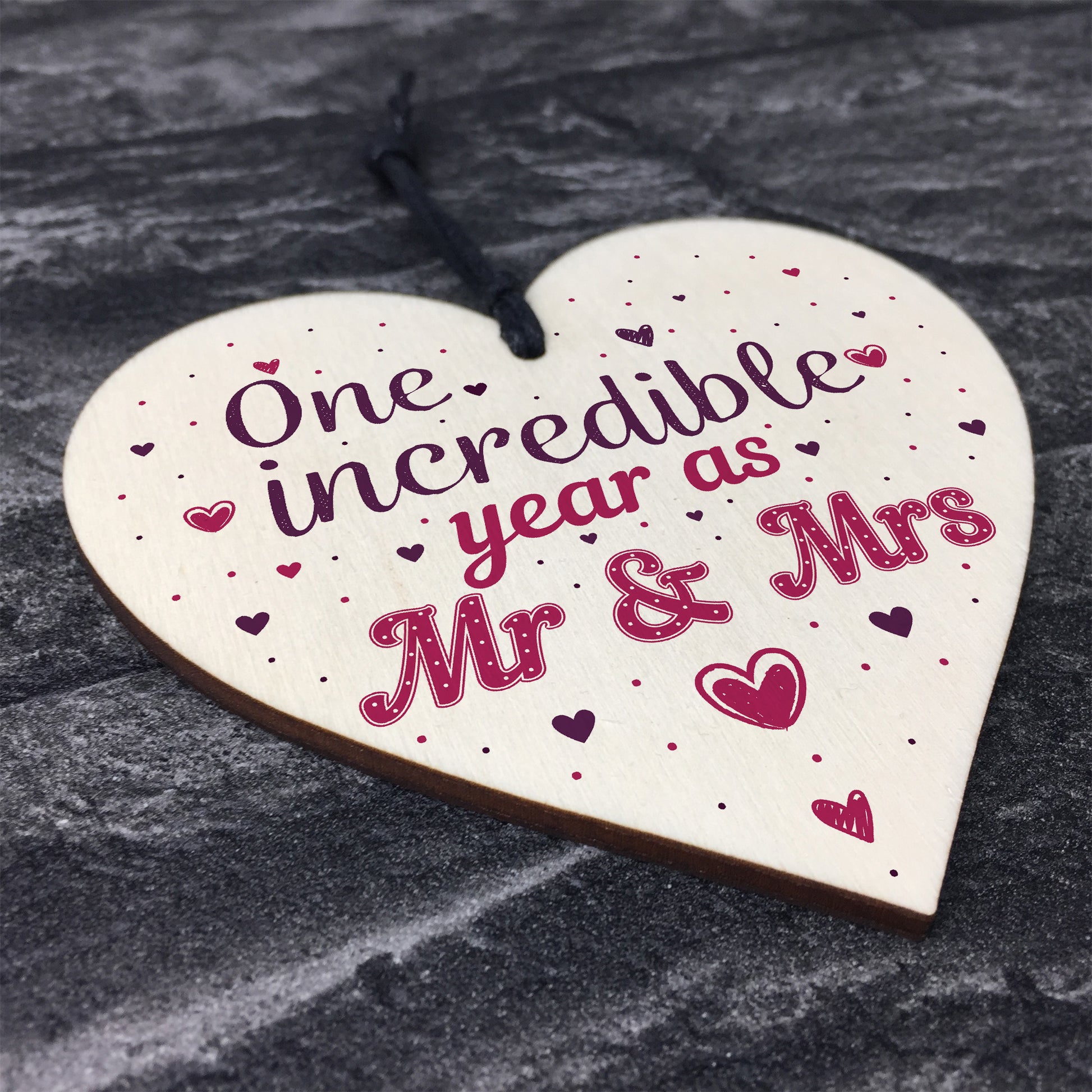 1st Wedding Anniversary Gift Wooden Heart Mr And Mrs One Year
