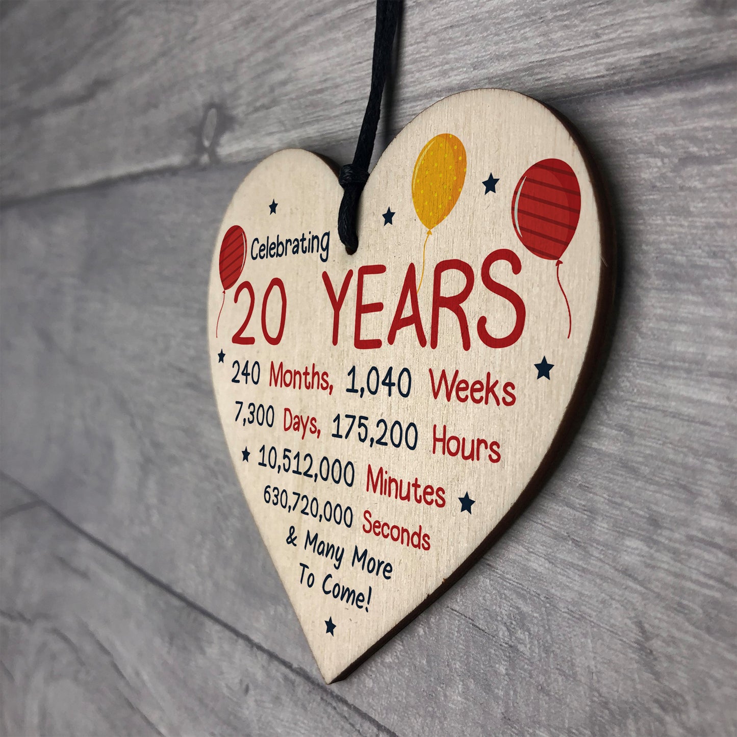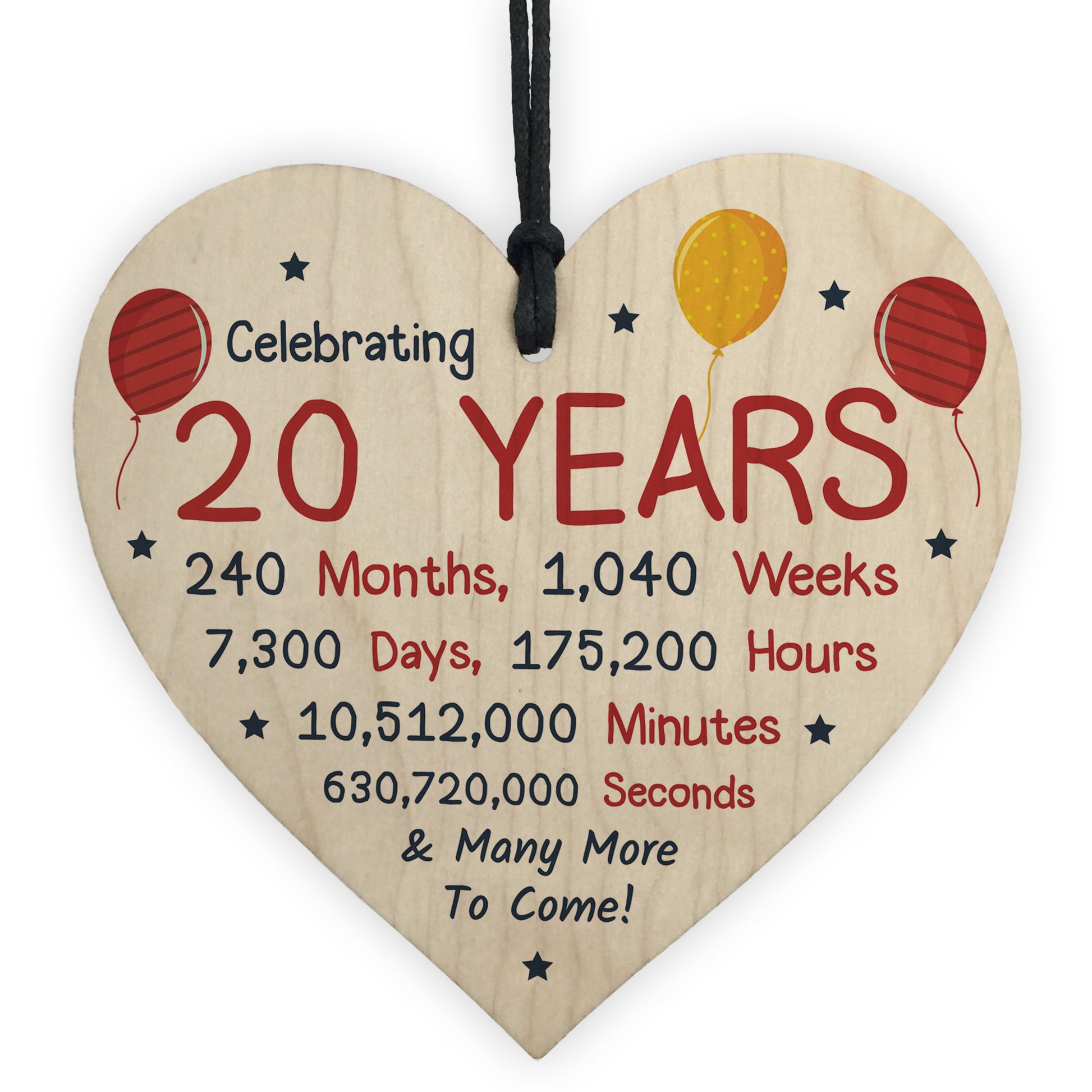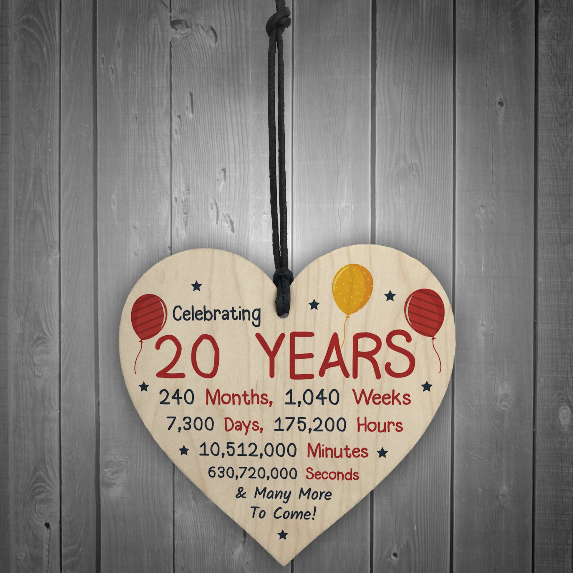 20th Birthday Novelty Wooden Heart Gift For Son Daughter Brother