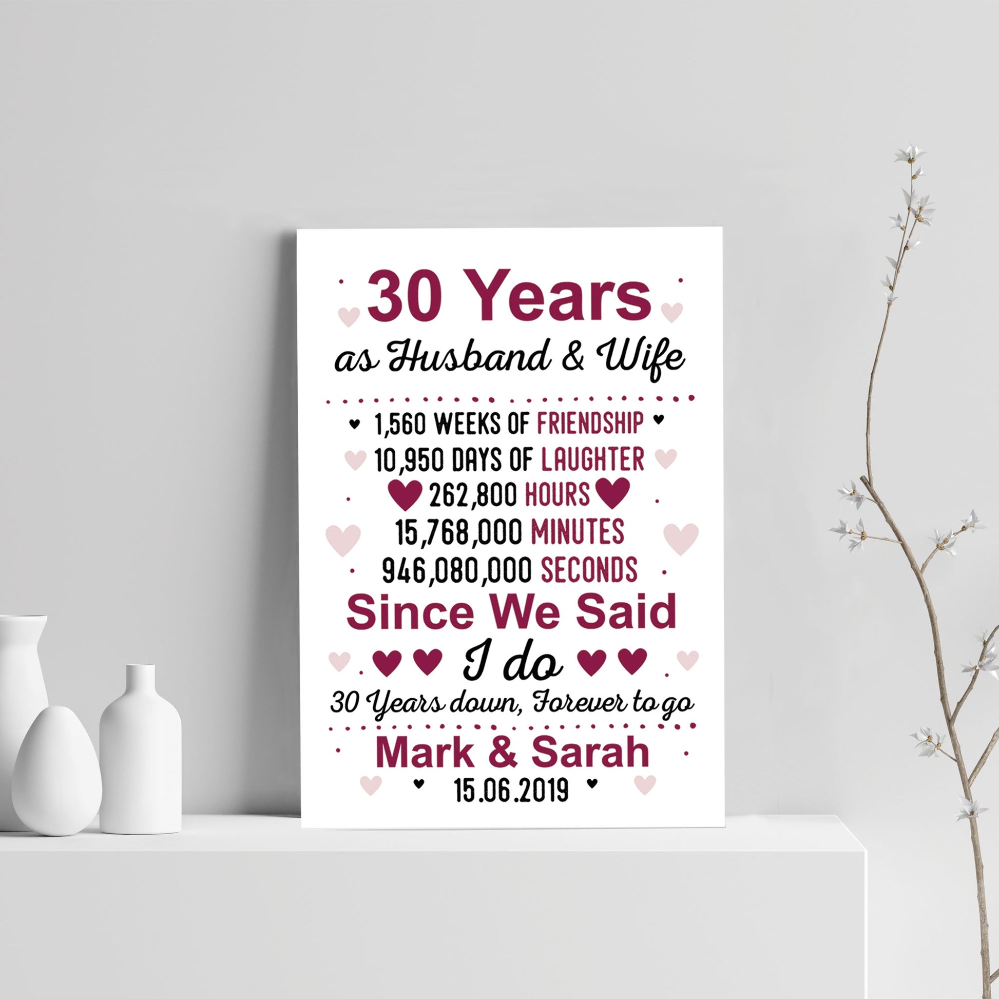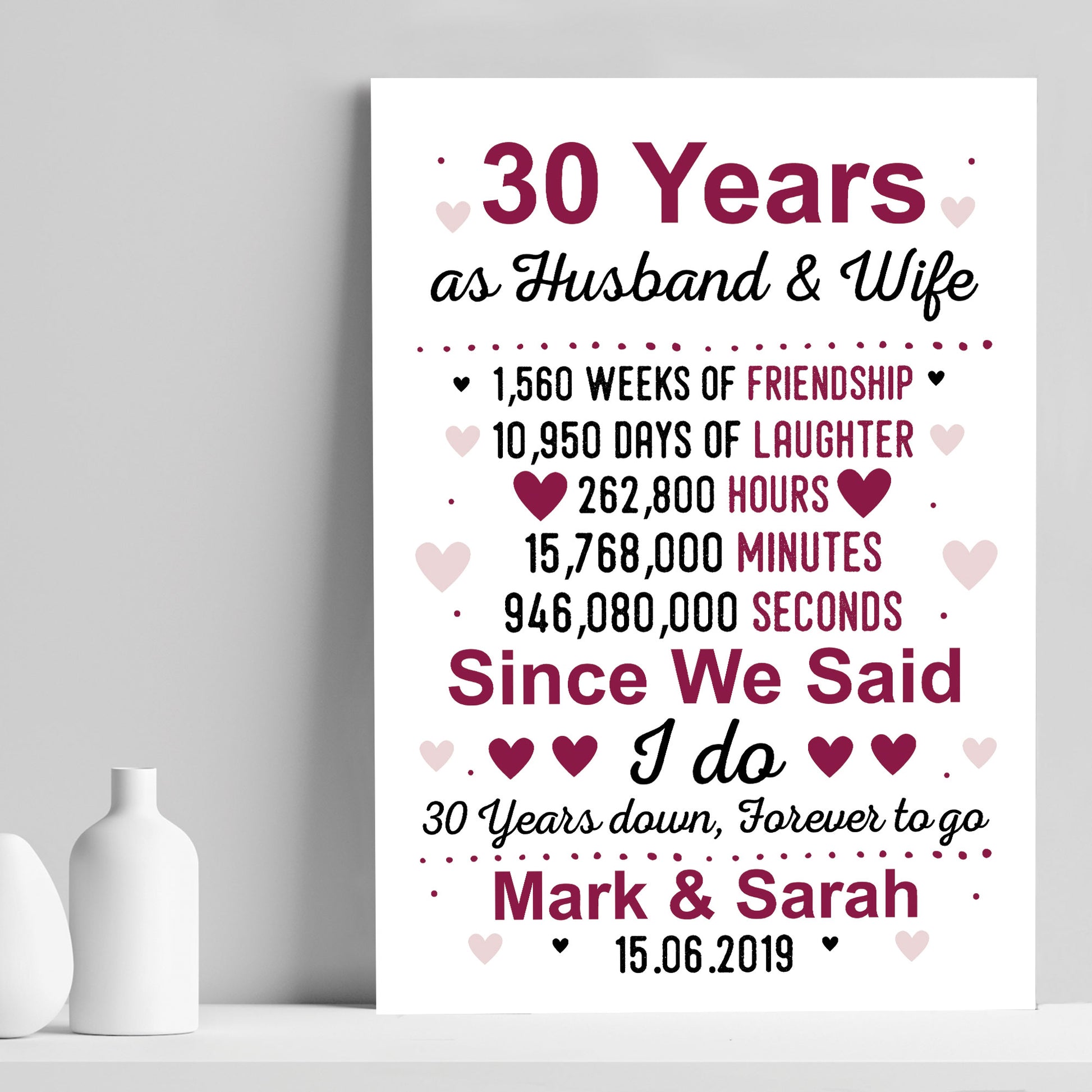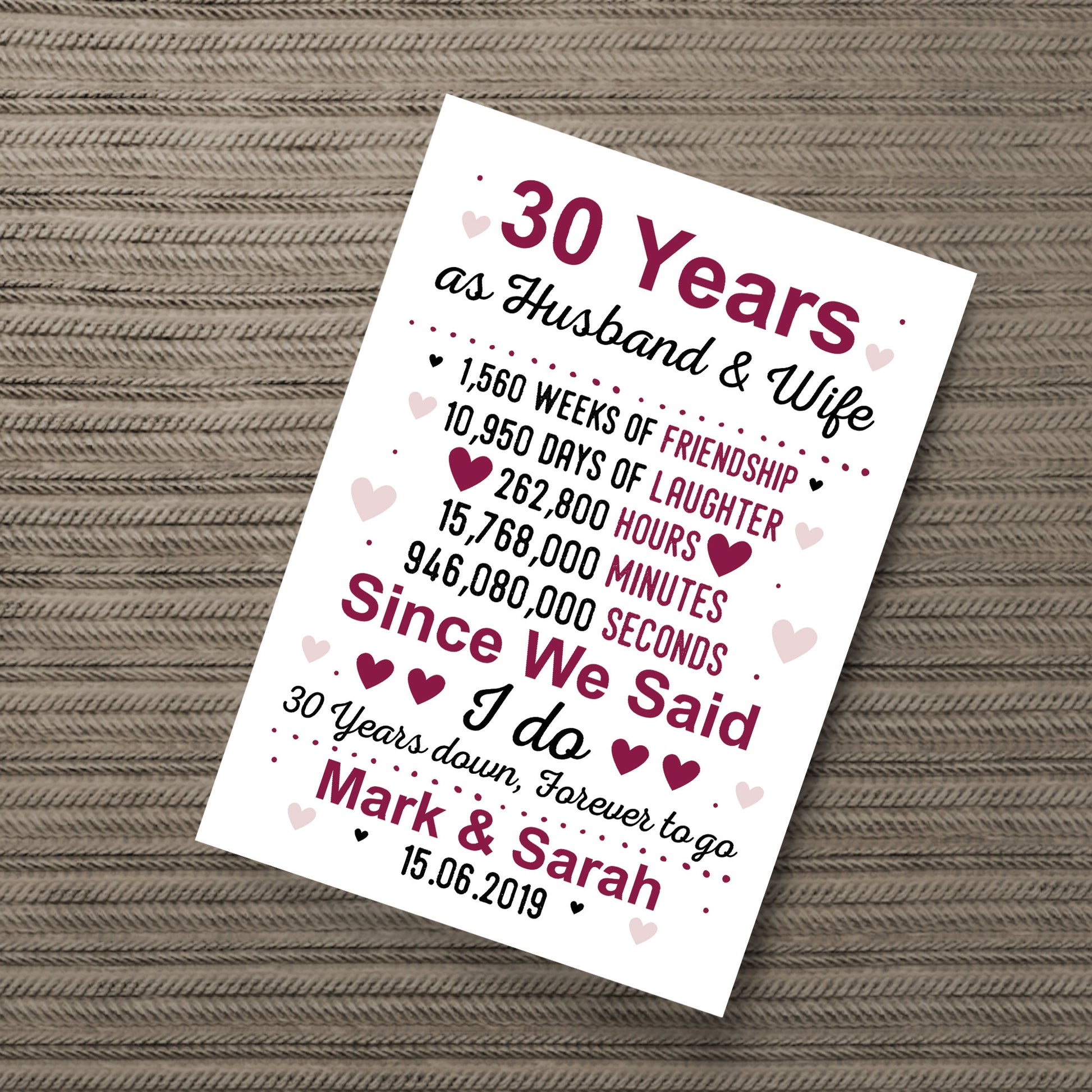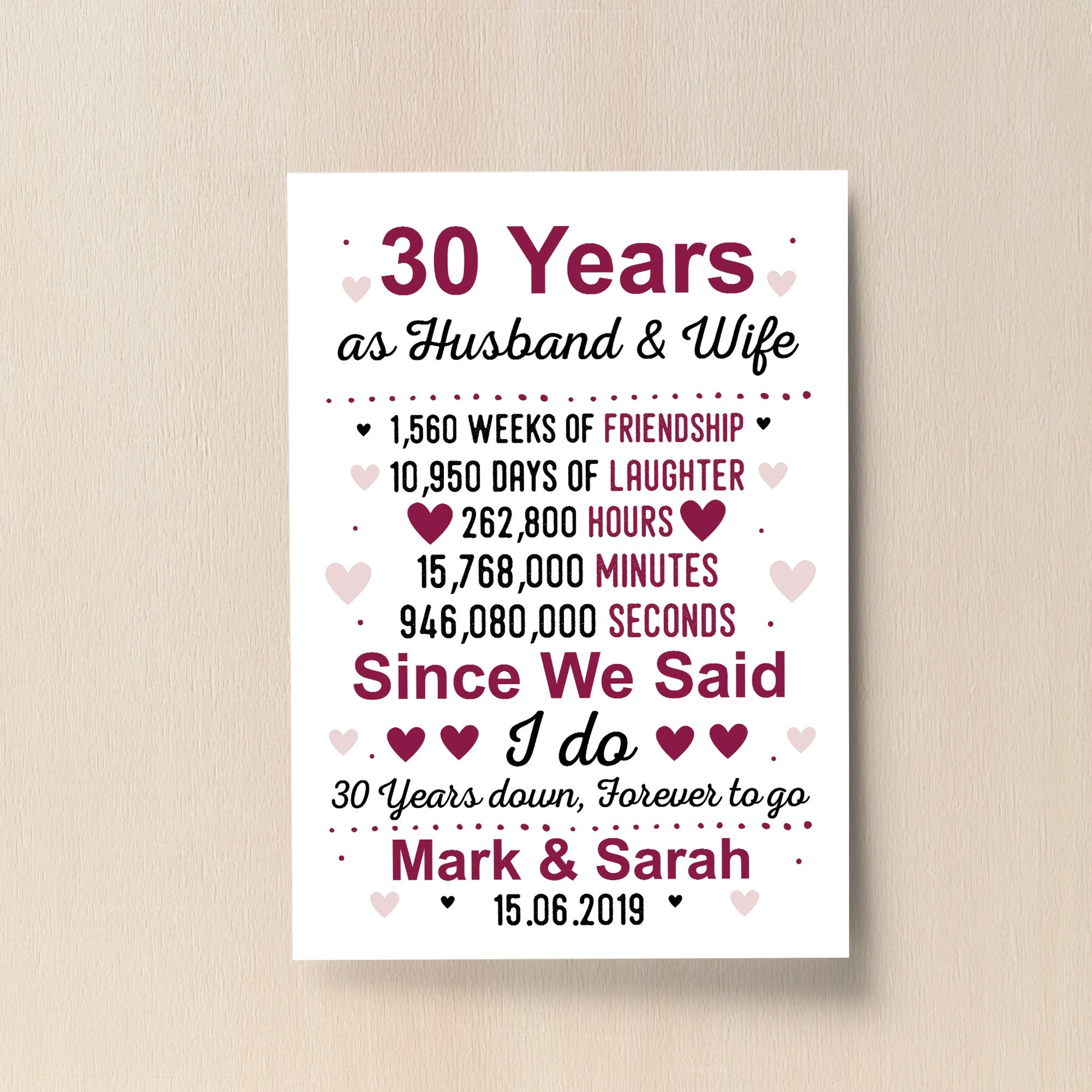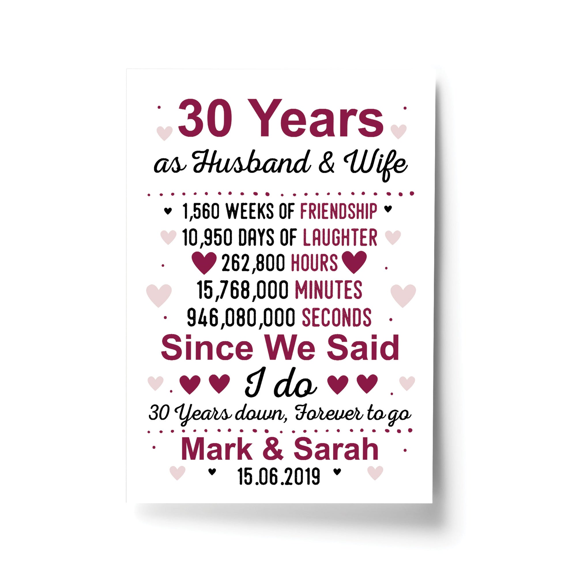 30th Anniversary Gift Personalised Print 30th Anniversary Card