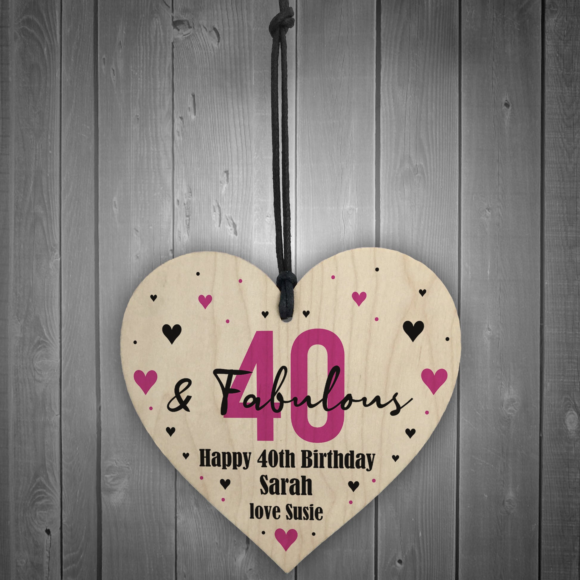40 And Fabulous Gift Wood Heart Personalised 40th Birthday Gift
