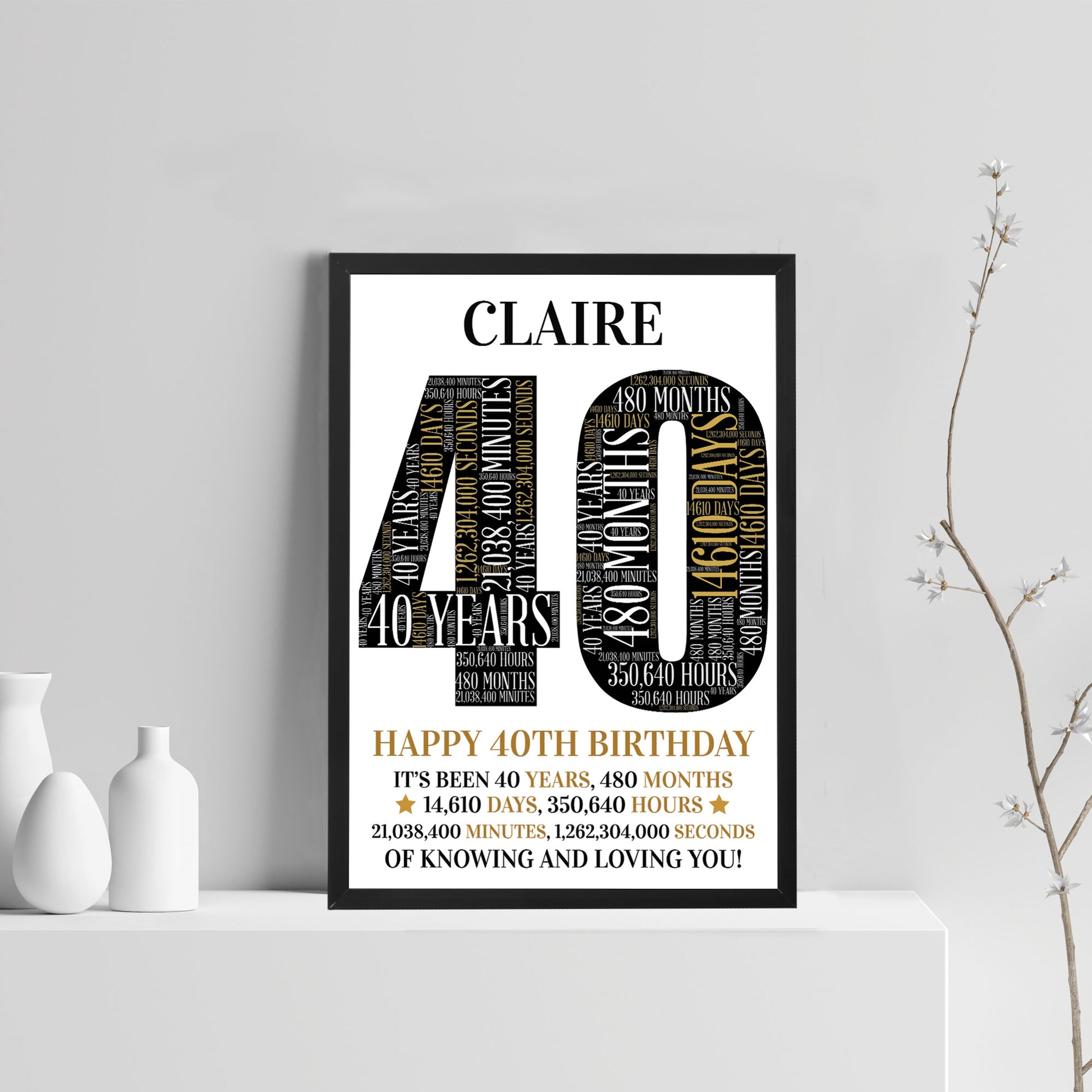 40th Birthday Gift Personalised Word Art Print 40th Birthday Gif