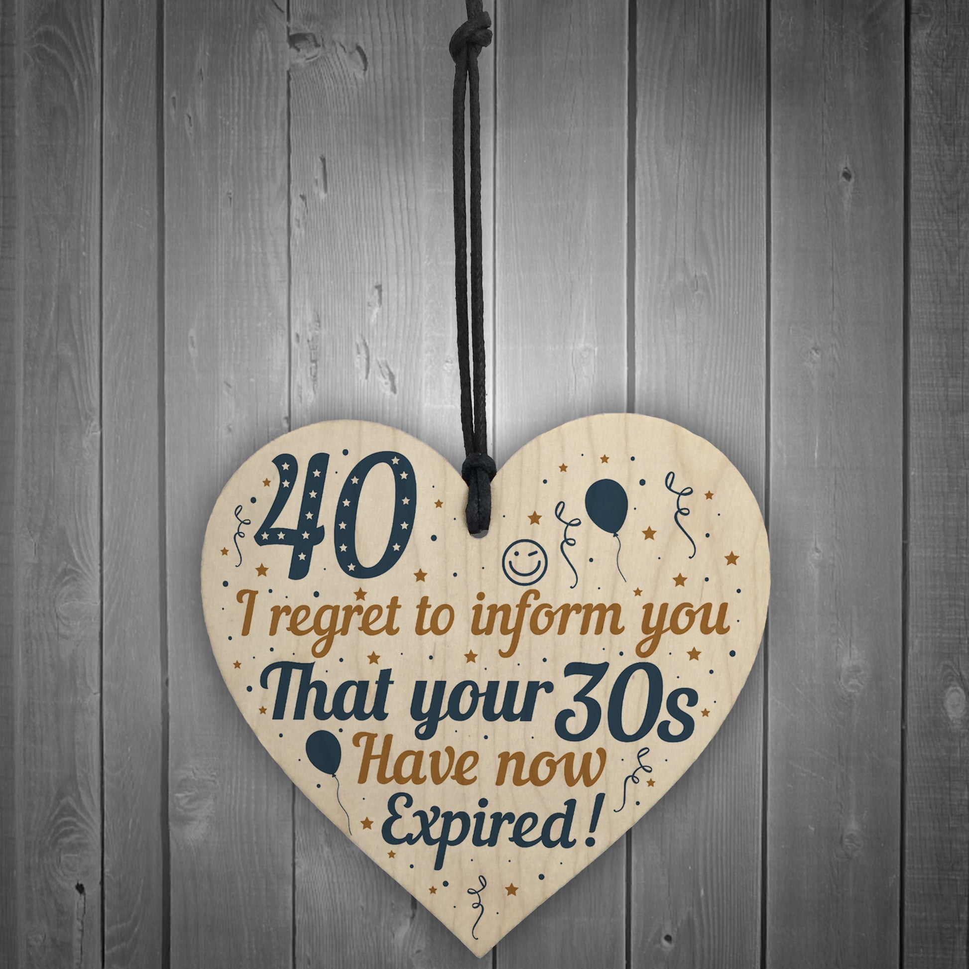 40th Birthday Men Women Funny Wooden Heart Sign Gift Friend