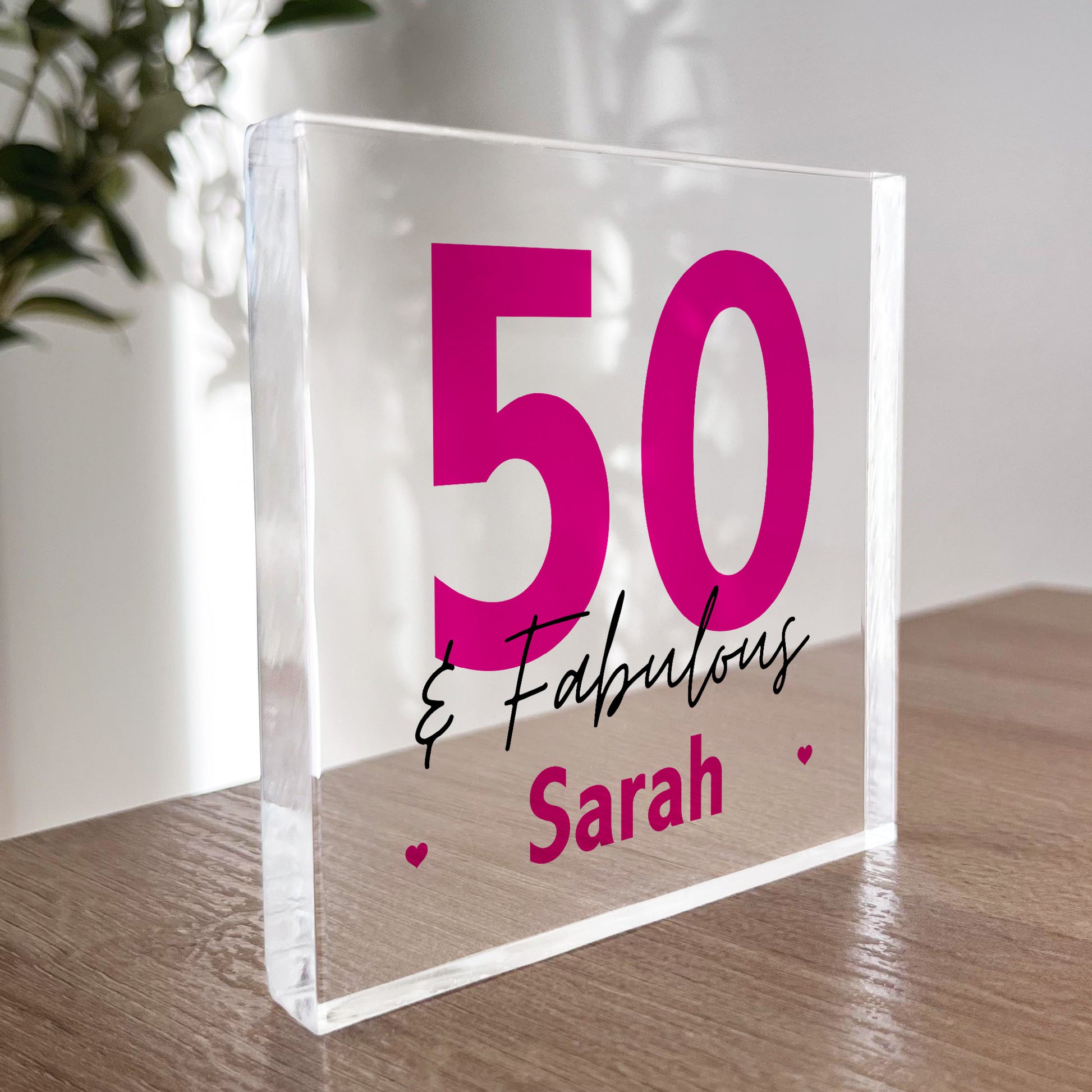 50th Birthday Gift Personalised Acrylic Block 50 And Fabulous