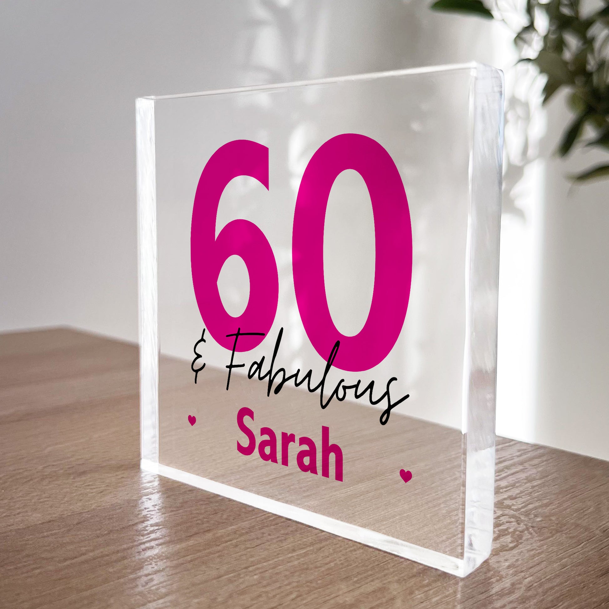 60th Birthday Gift Personalised Acrylic Block 60 And Fabulous