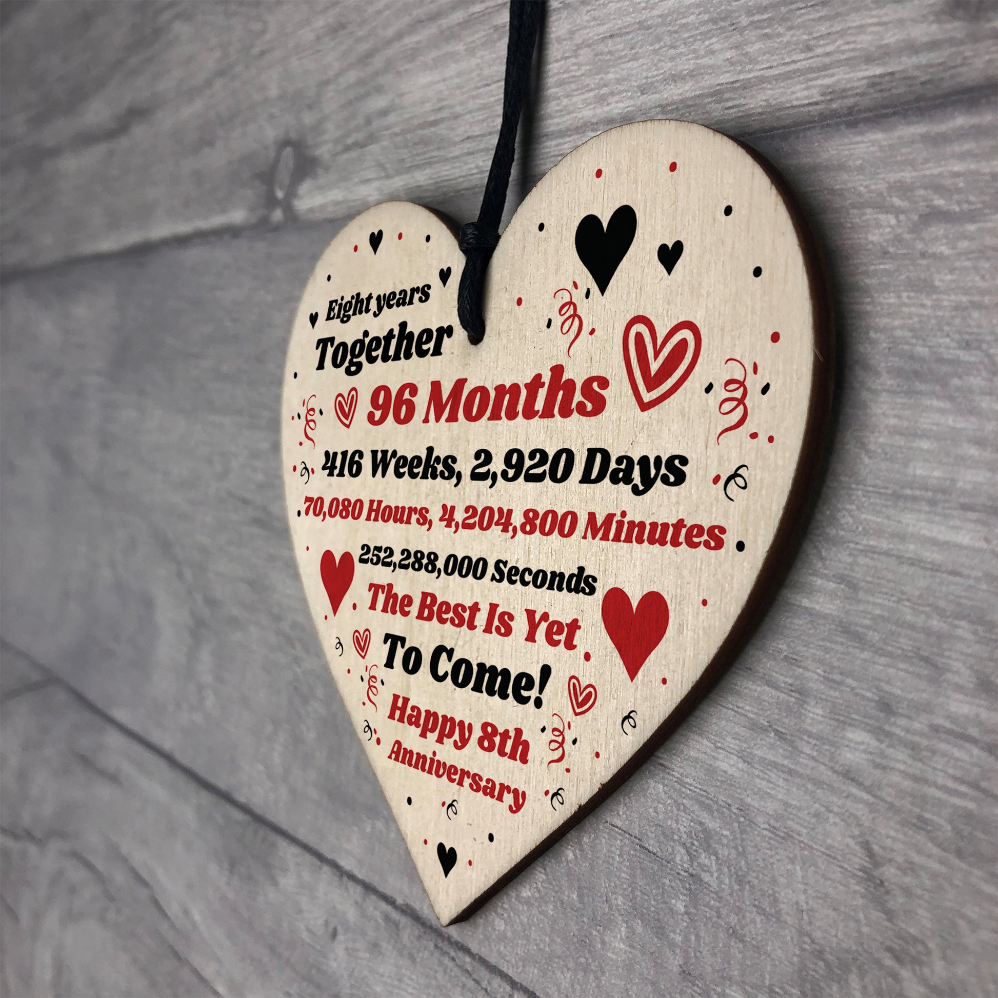 The sign is made from FSC Certified wood, and the design is permanently printed into the wood. The wooden heart is supplied with waxed cotton rope to allow easy hanging and looks great in any room of the house.