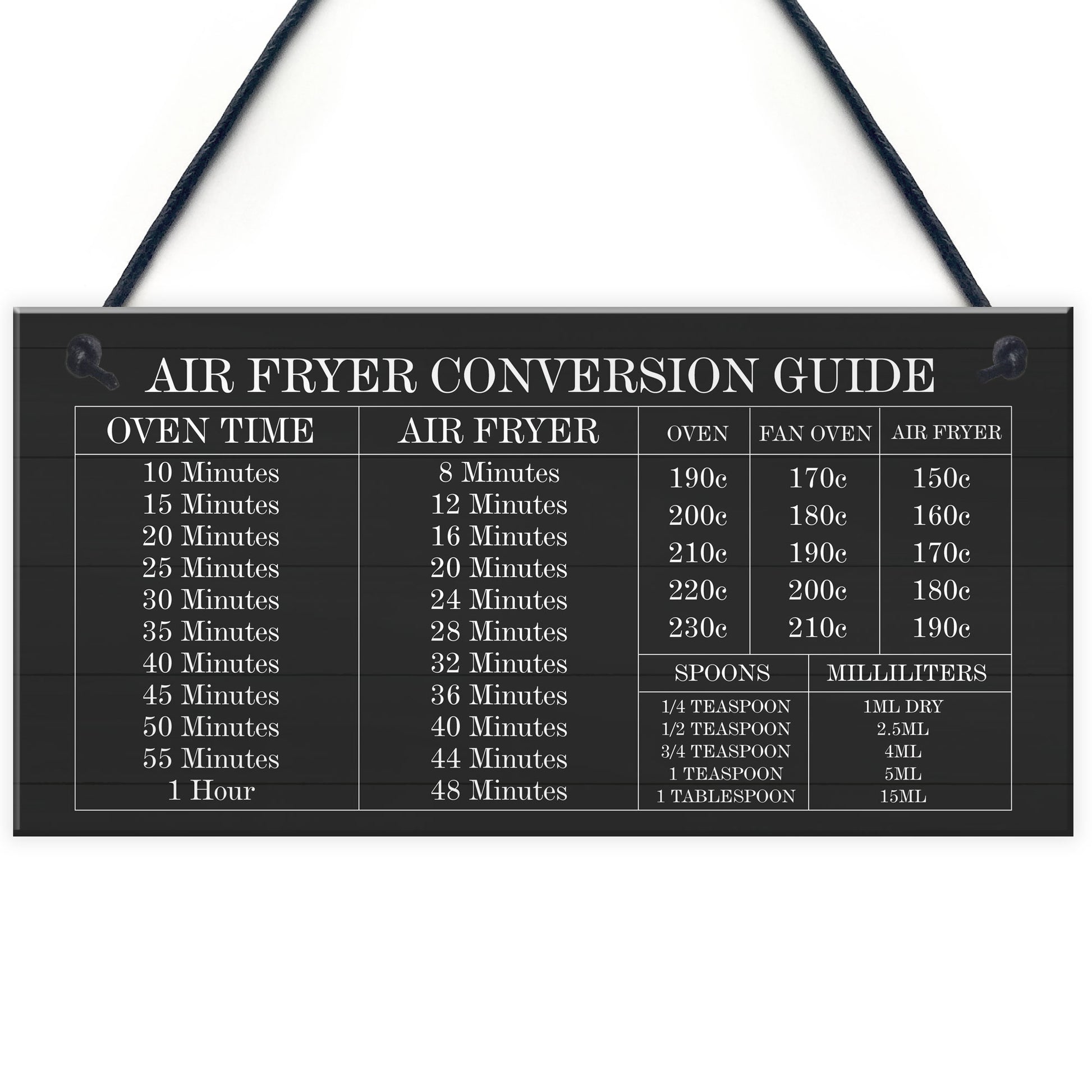 A Complete conversion guide for your Air Fryer! Displayed on a beautiful hanging that will add to the decor in your kitchen / home! This plaque will look great hung in any part of the house. This gorgeous plaque makes an amazing Birthday or Christmas gift but is also a great gift anytime of the year. Supplied ready to hang, a beautiful keepsake that will be treasured for years to come.