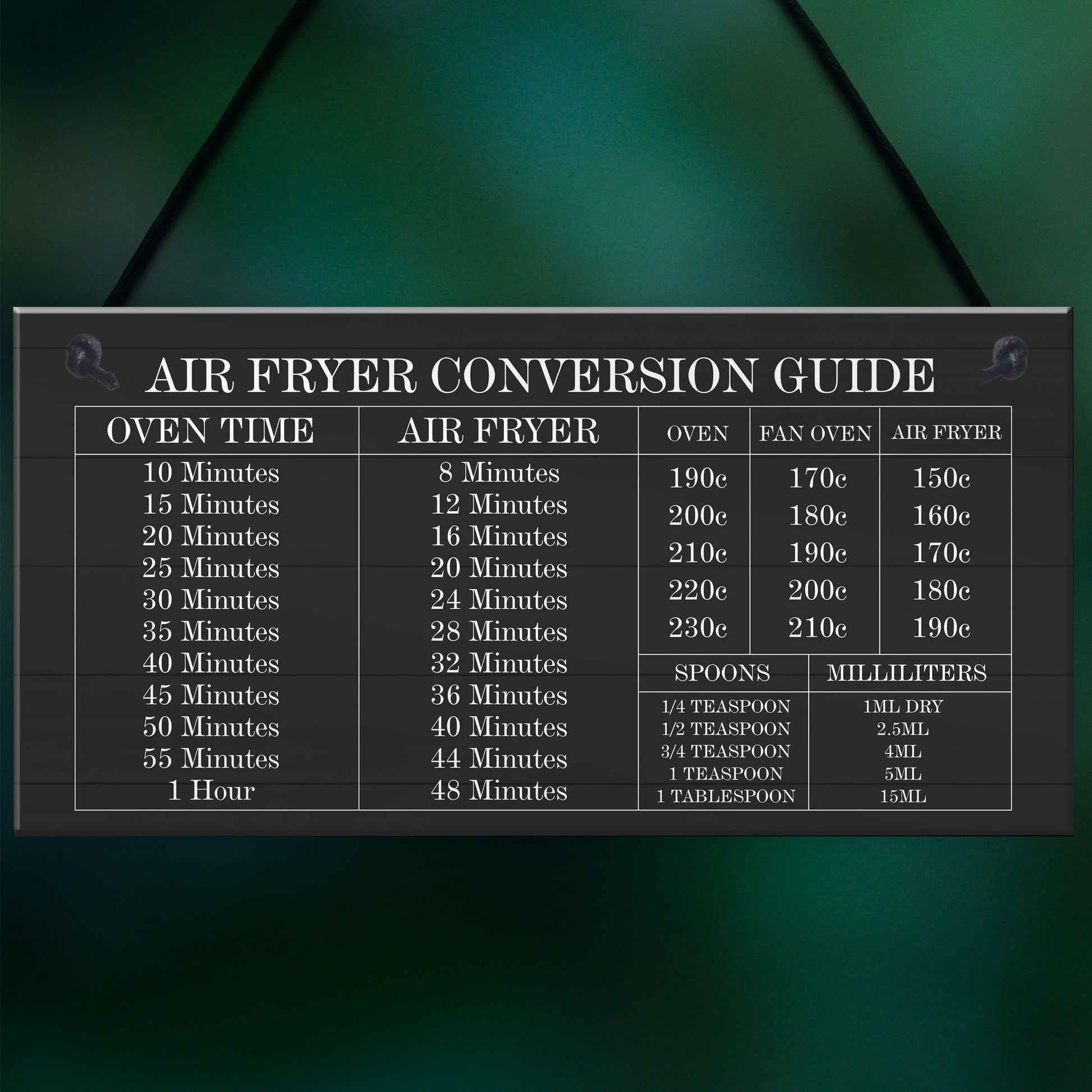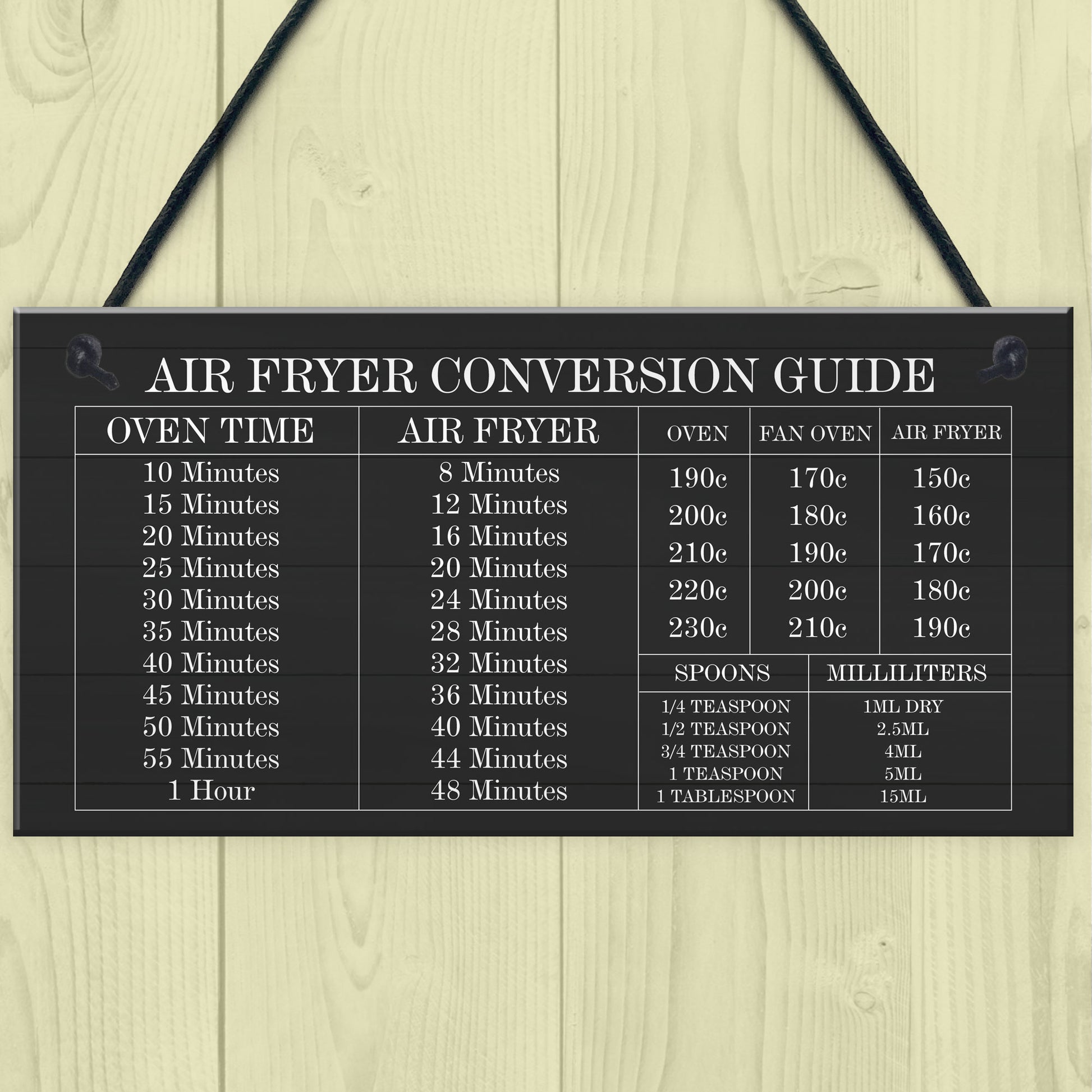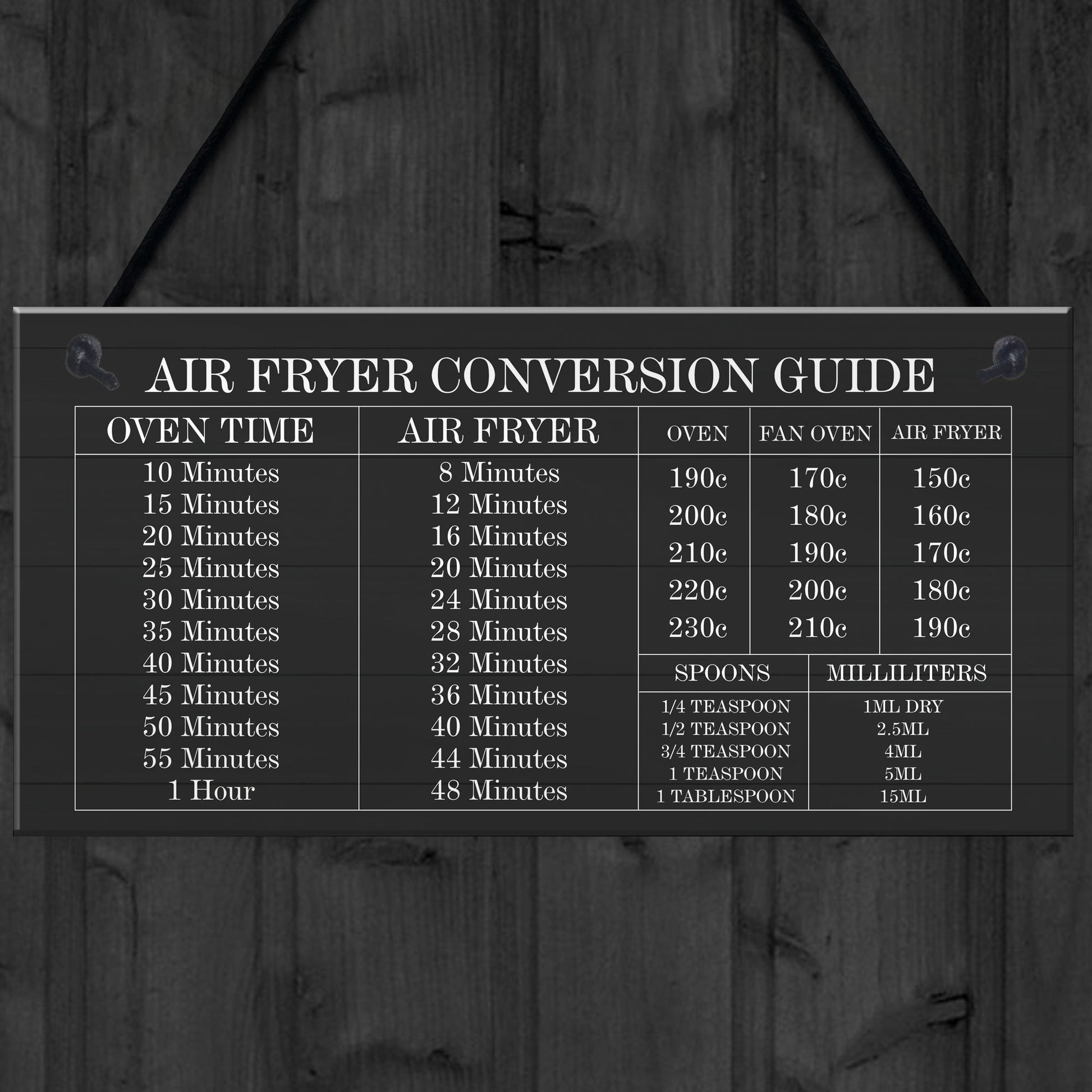 Air Fryer Conversion Sign Cooking Times Temp Oven Kitchen Sign