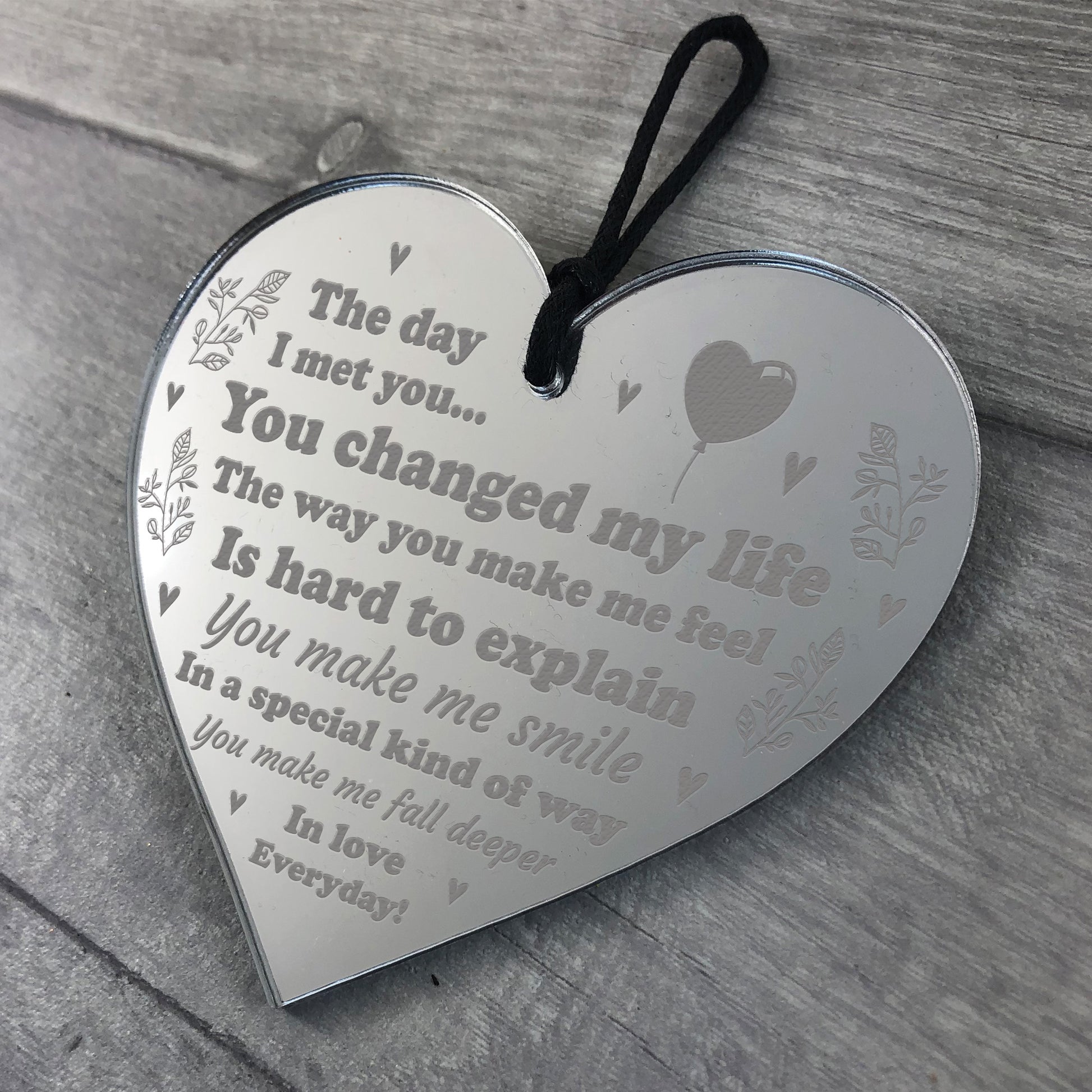 A gorgeous hand made gift for your Boyfriend/Girlfriend/Husband/Wife Gift, combine with a card or suitable on its own, this Anniversary Gift will be the perfect gift to say Happy Anniversary! A gorgeous acrylic heart plaque printed with a beautiful message. Give this gift with love and put a smile on their face every time they read it.