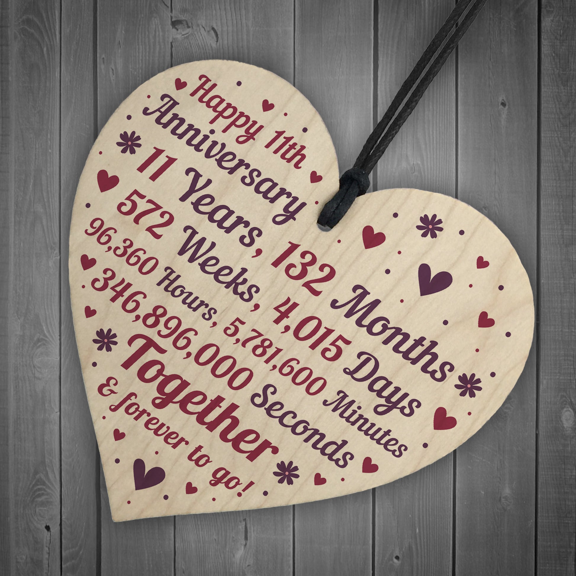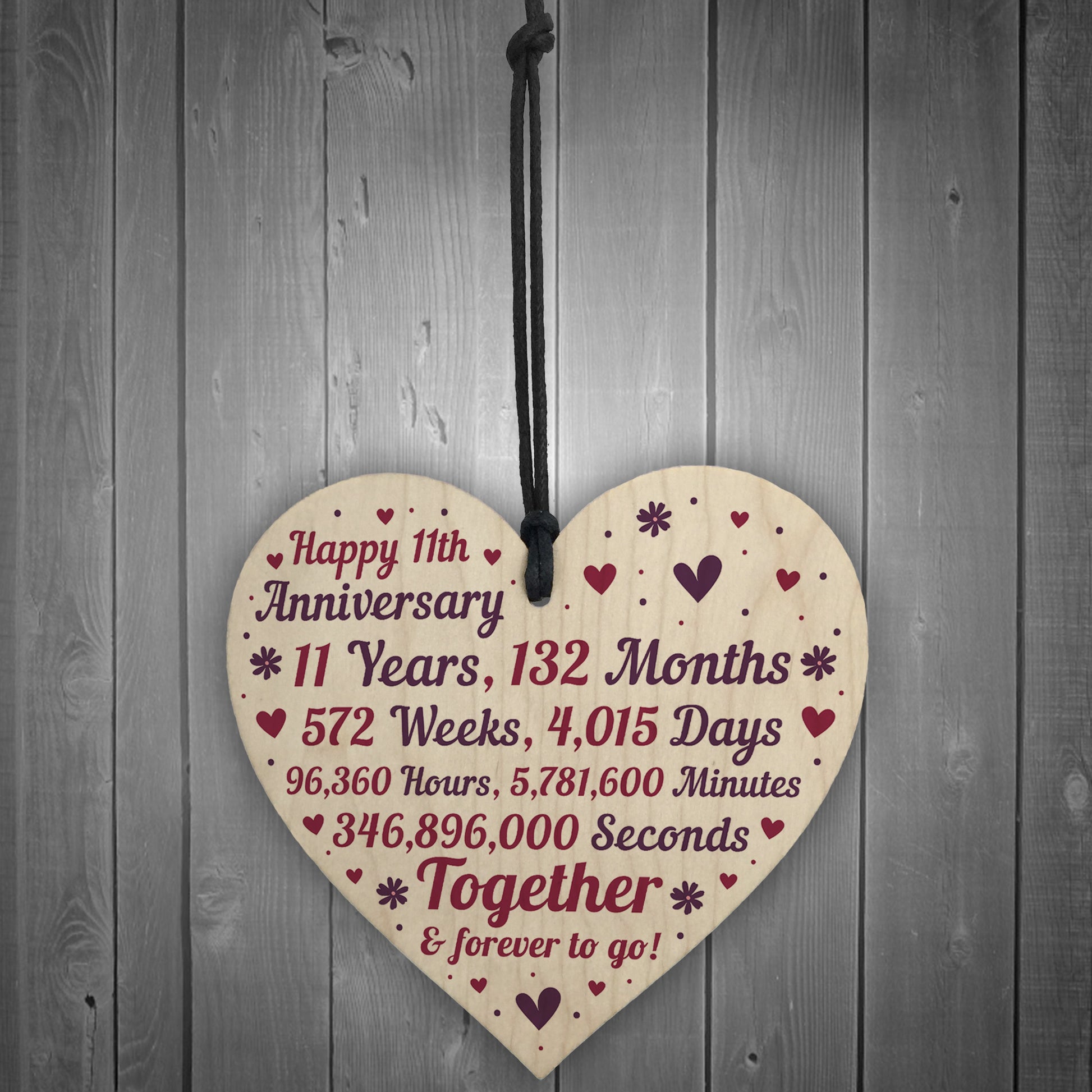 Anniversary Wooden Heart To Celebrate 11th Wedding Anniversary
