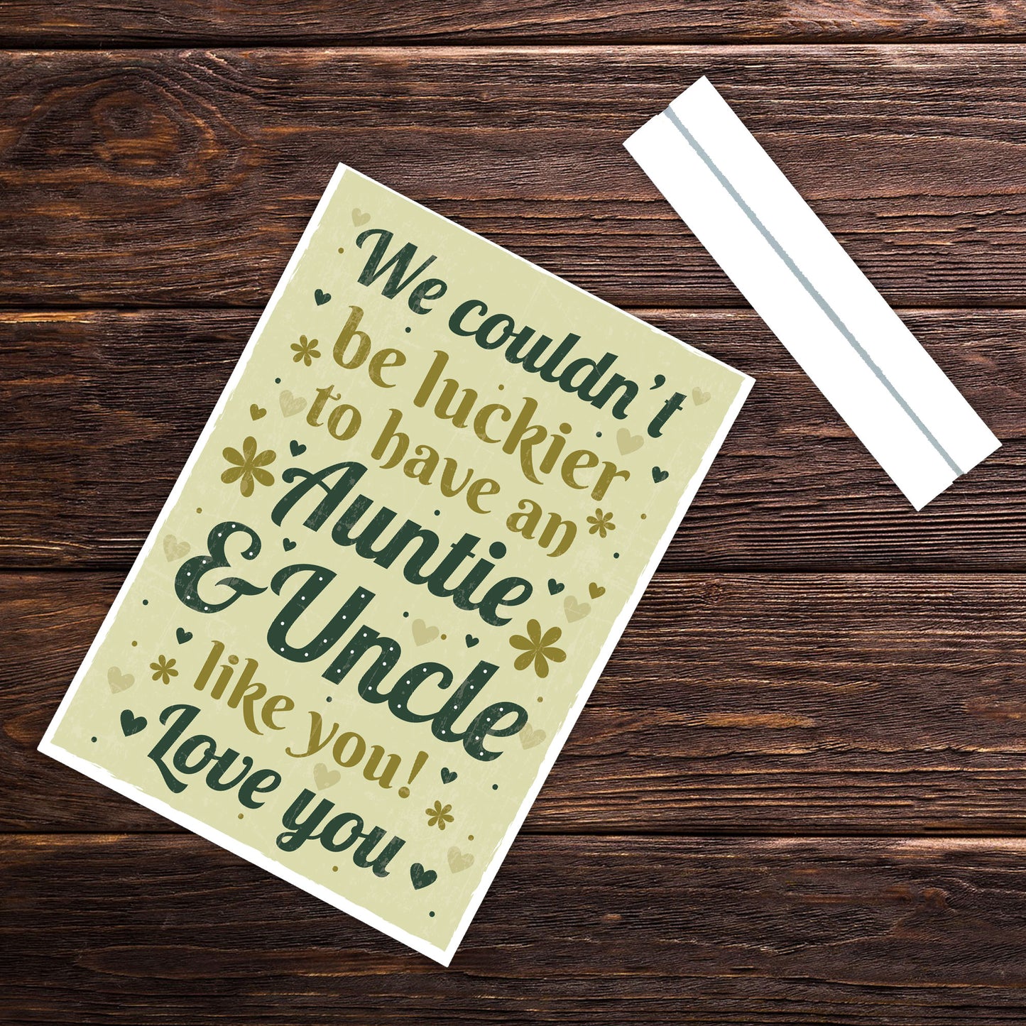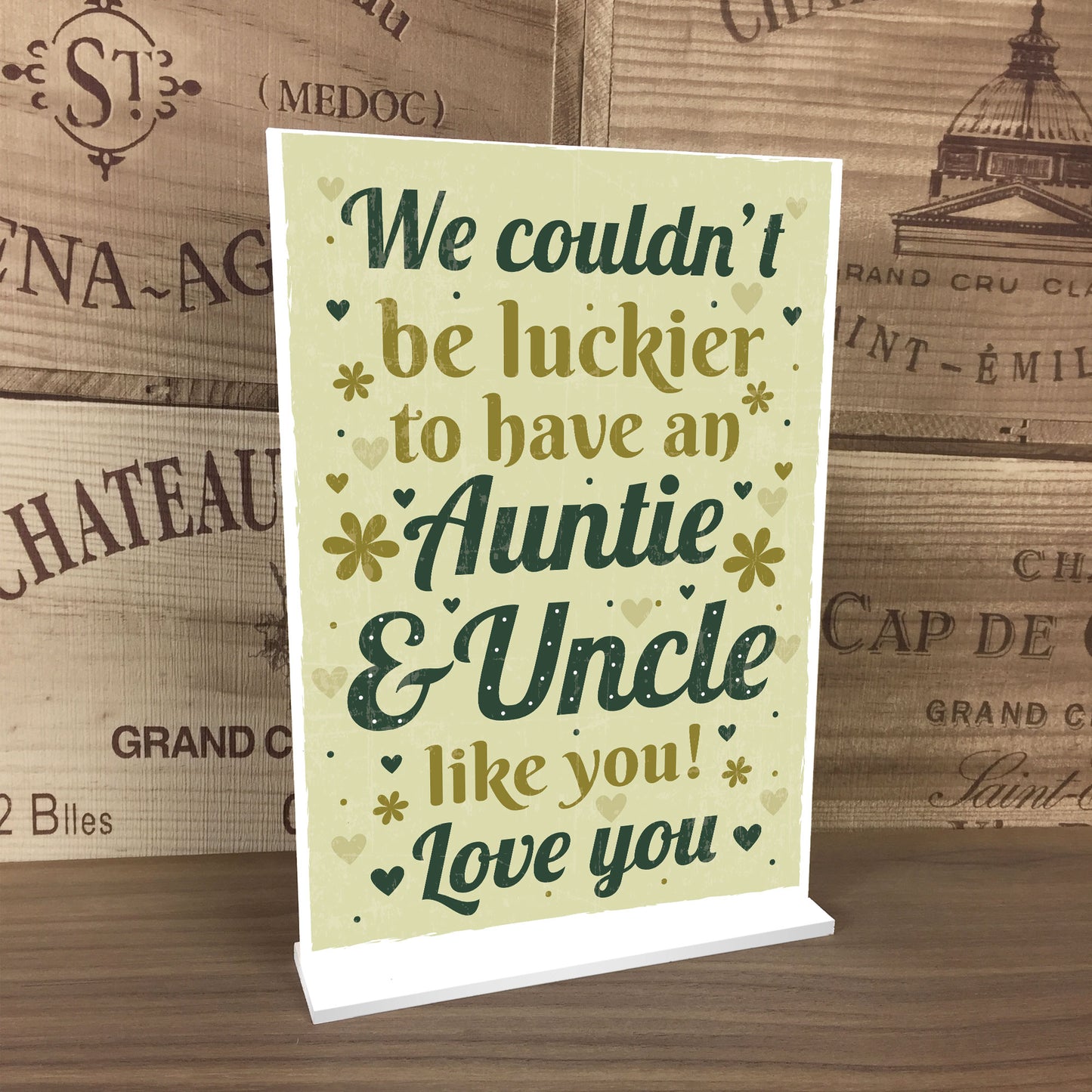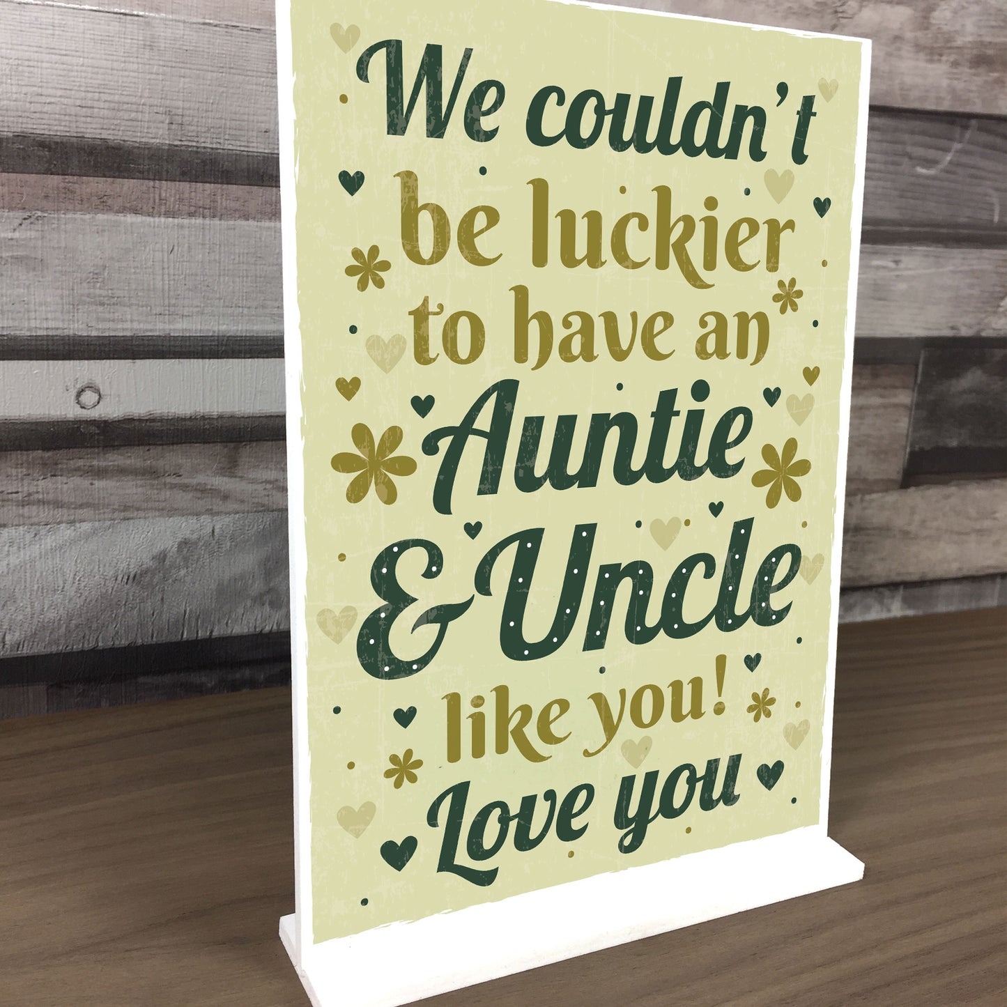 This plaque will look great standing on a shelf or in any part of the house. Give this gift with love to your auntie / uncle and put a smile on their face letting them know of your love every time they read it. This gorgeous plaque makes an amazing Birthday or Christmas gift but is also a great gift anytime of the year. Supplied with a stand, a beautiful keepsake that will be treasured for years to come.