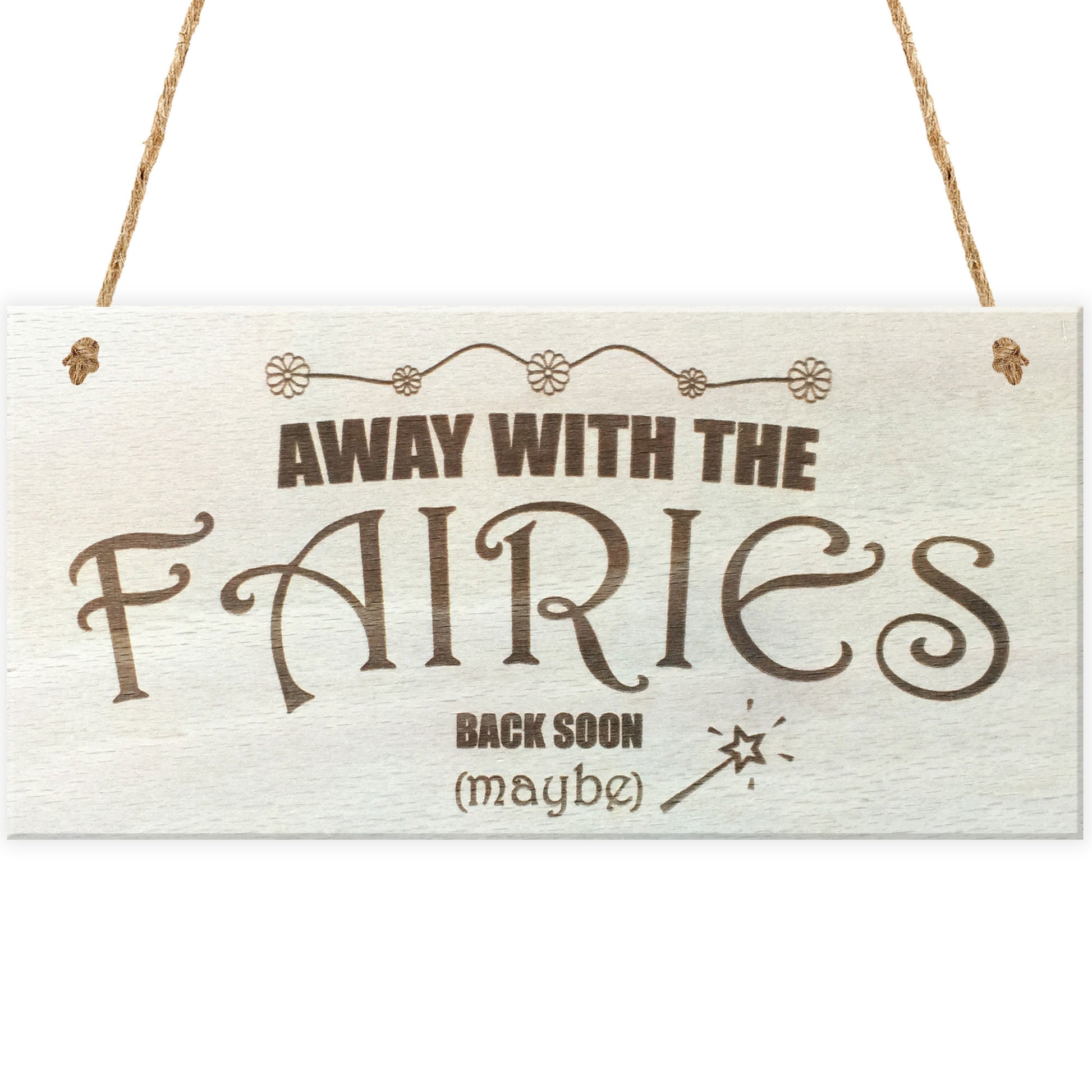 Away With The Fairies Novelty Wooden Hanging Plaque Garden Sign